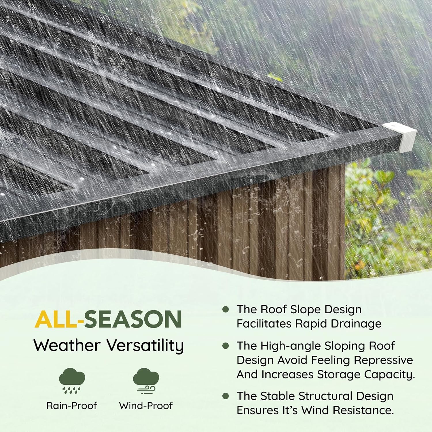 - Weather-Resistant Steel Construction: Made with galvanized steel panels that resist rust, corrosion, and UV damage, ensuring long-lasting durability in all weather conditions.