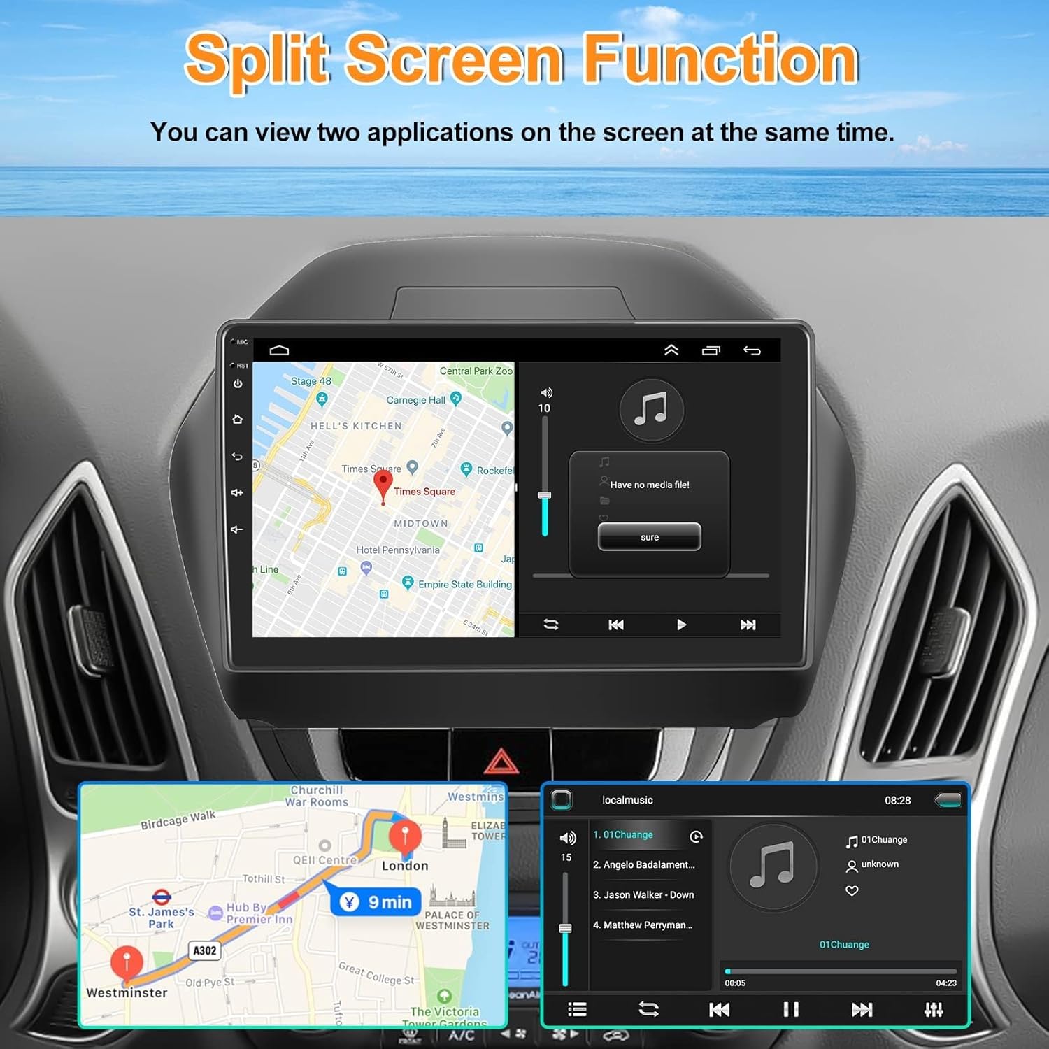 - ăAndroid 10.1 Inch Car Radio for Hyundai Tucson IX35 2010-2015ăCompatible car models: for Hyundai Tucson IX35 2010 2011 2012 2013 2014 2015 upgrade radio, 10.1-inch 2.5D tempered glass mirror, touch sensitive, high-definition resolution. Support multiple national languages. Support the rear data line USB input. Support equalizer to improve sound quality, use EQ to adjust sound. 1GB (RAM)+32GB (ROM) memory. 26UI themes setting, Functions meet daily needs