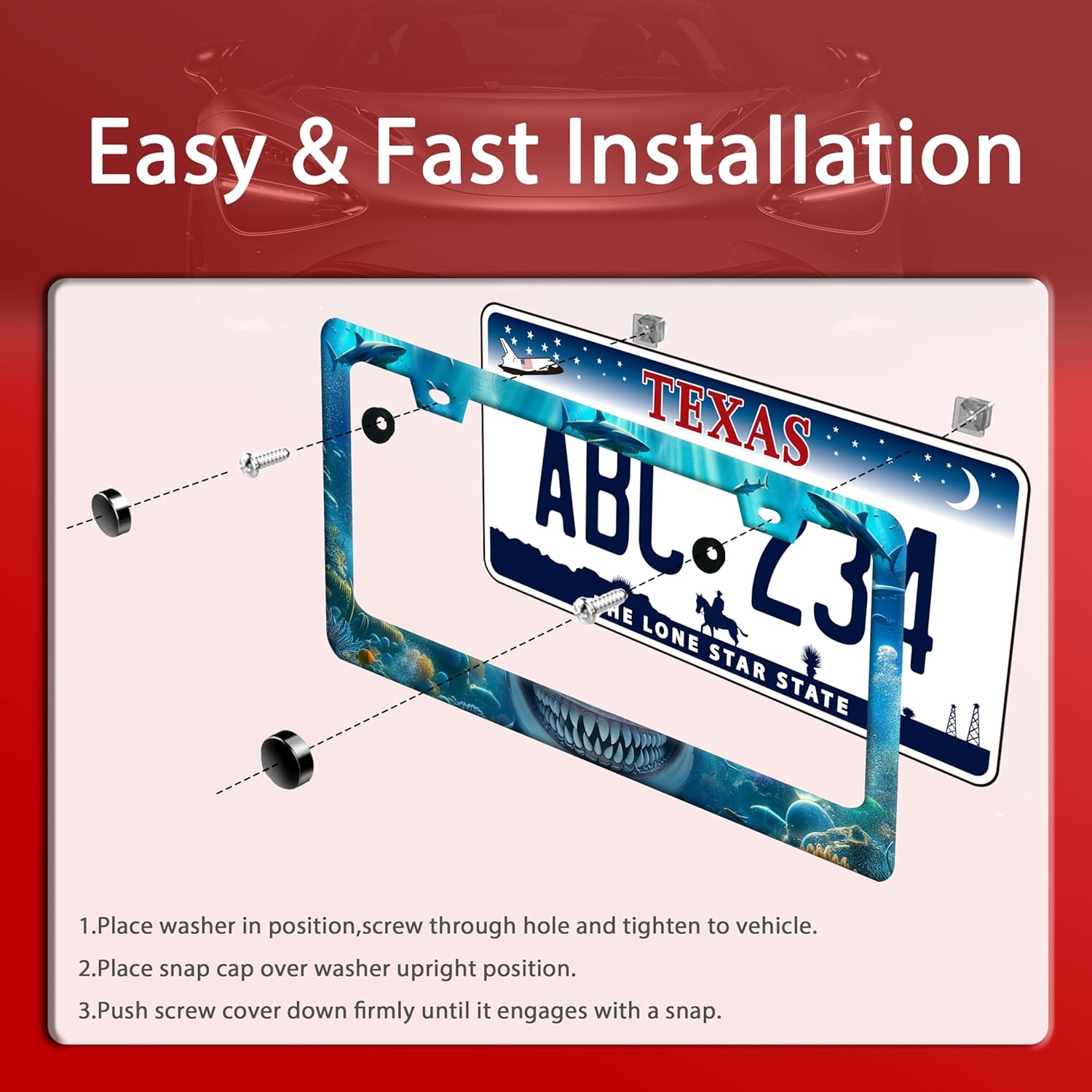 Shark License Plate Frame Ocean Marine Fish License Plate Holder Funny Stainless Steel Accessories Cars Decor with 2 Holes and Screws Fits Standard Us Ca Vehicles License Plate Frames 12.2 X 6 Inch