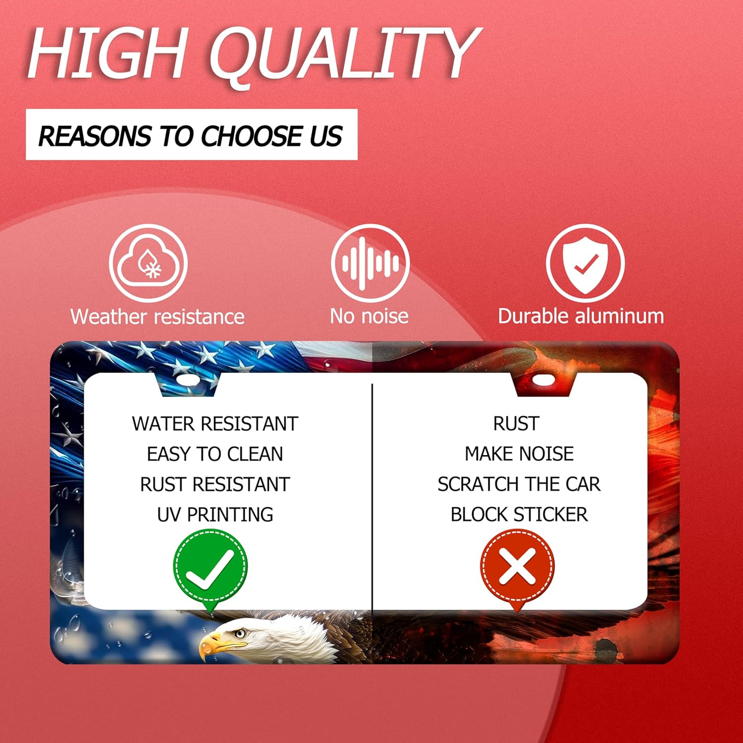 American Flag Eagle License Plate Frame Patriotic Flag License Plate Holder Funny Stainless Steel Accessories Cars Decor with 2 Holes and Screws Fits Standard Us Ca Vehicles License Plate 12.2 X 6 in