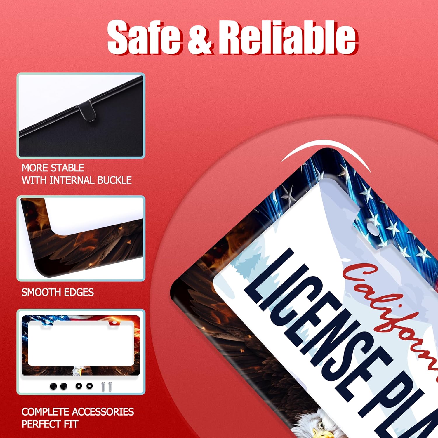 American Flag Bald Eagle License Plate Frame Patriotic License Plate Frames for Car Decorative Parts Stainless Stee License Plate for Standard Us Canada Funny License Plate Holder 12x6 Inch Unisex