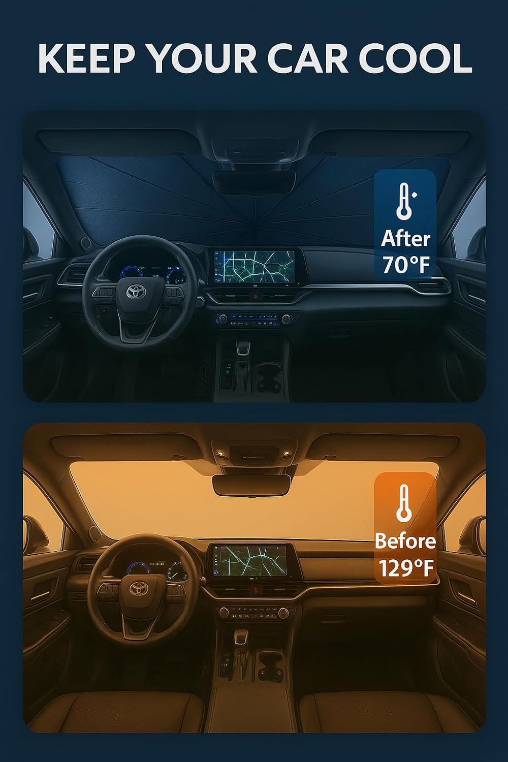 - Certified Sustainable. Customized Windshield Sunshade: Specially designed for the 2023-2025 Toyota Crown with precise mirror cutouts, providing 100% shading, carbon fiber handle, ensuring lightweight and durability while also having a fashionable feel. Our Crown windshield sunshade can protect the interior of your car from various light damage and prevent dashboard and seat degradation.