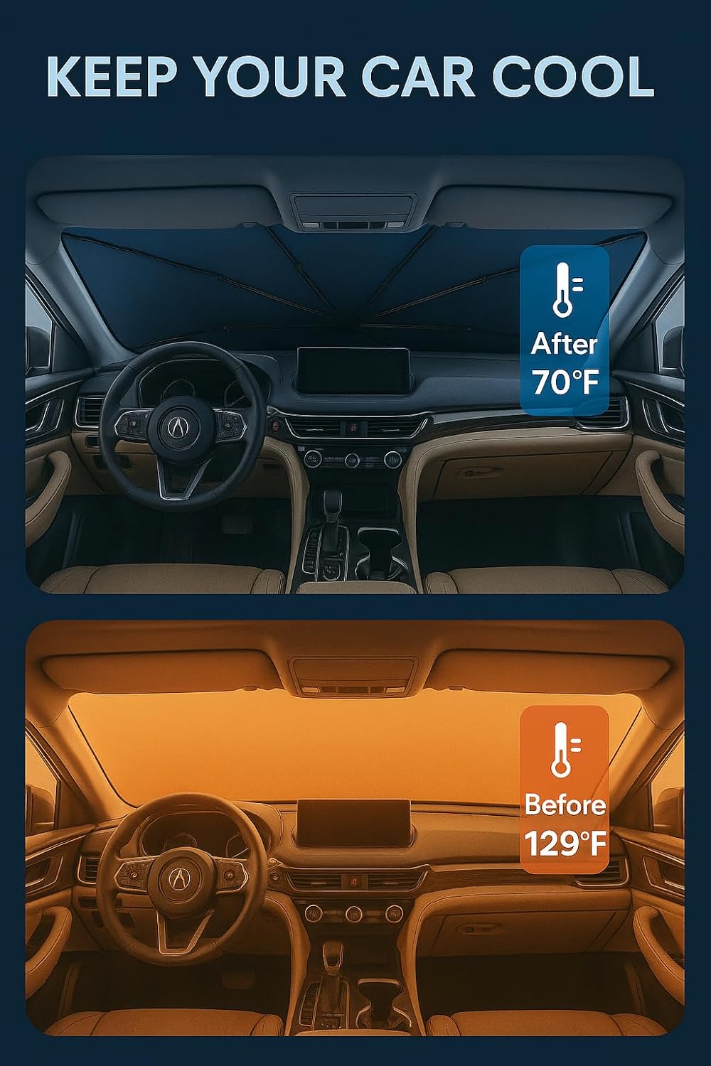 - Certified Sustainable. Customized Windshield Sunshade: Specially designed for the 2022-2025 Acura MDX with precise mirror cutouts, providing 100% shading, carbon fiber handle, ensuring lightweight and durability while also having a fashionable feel. Our MDX windshield sunshade can protect the interior of your car from various light damage and prevent dashboard and seat degradation.