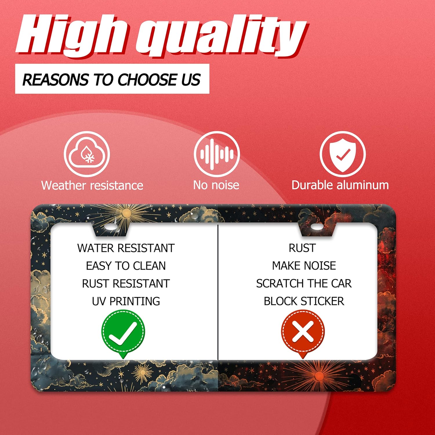 - No Fear Of Wind And Rain: It can be used with confidence in any bad weather conditions,protect our vehicle license plates, and decorate your car.