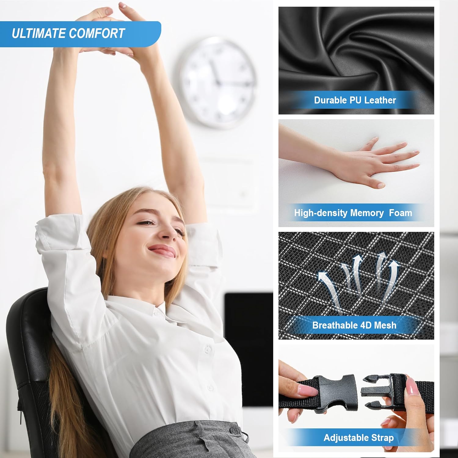 - Premium Quality - Durable PU leather can be used for a long time, maintaining an elegant appearance and easy to clean; fashionable fabrics. Car back support ensures ultimate comfort for the driver during long-time driving. Pillow offers consistent support, style, and quality