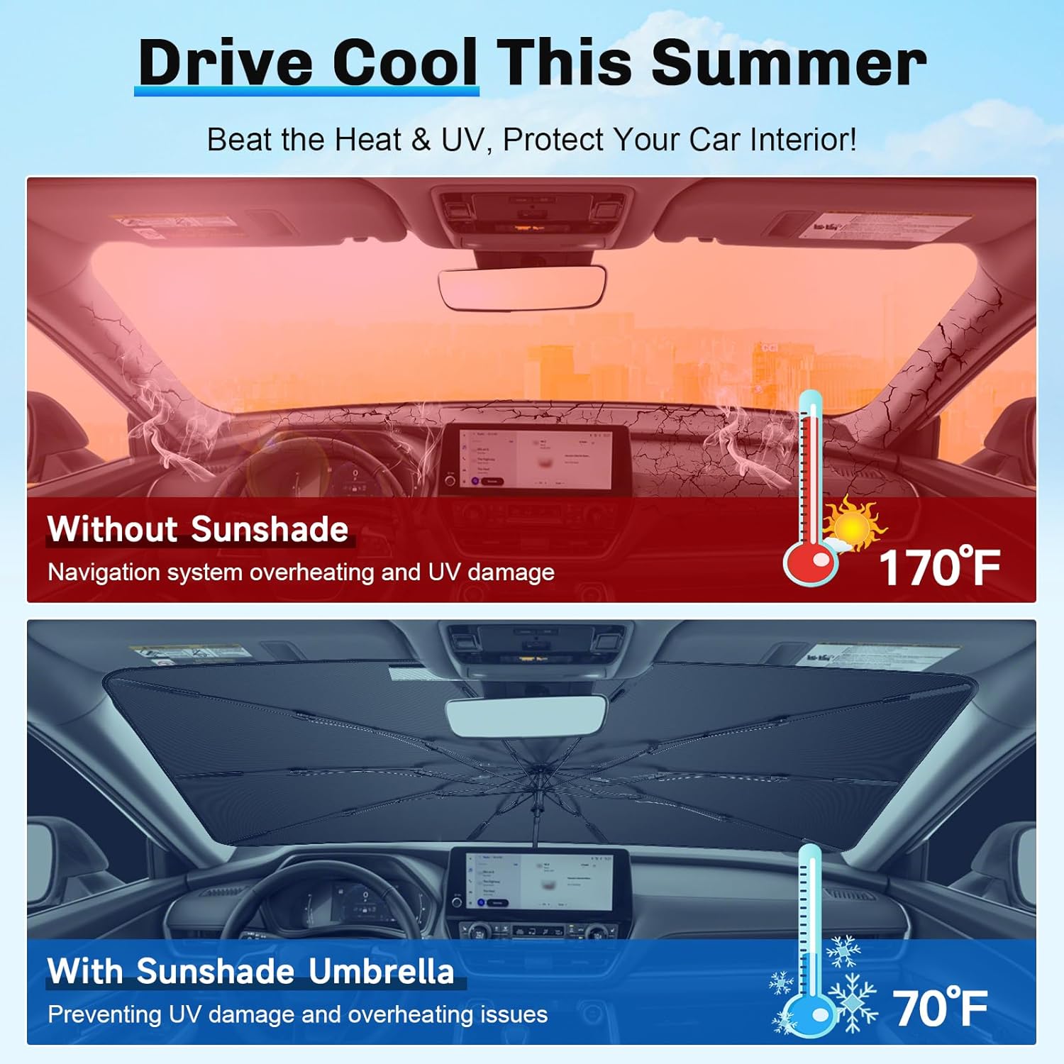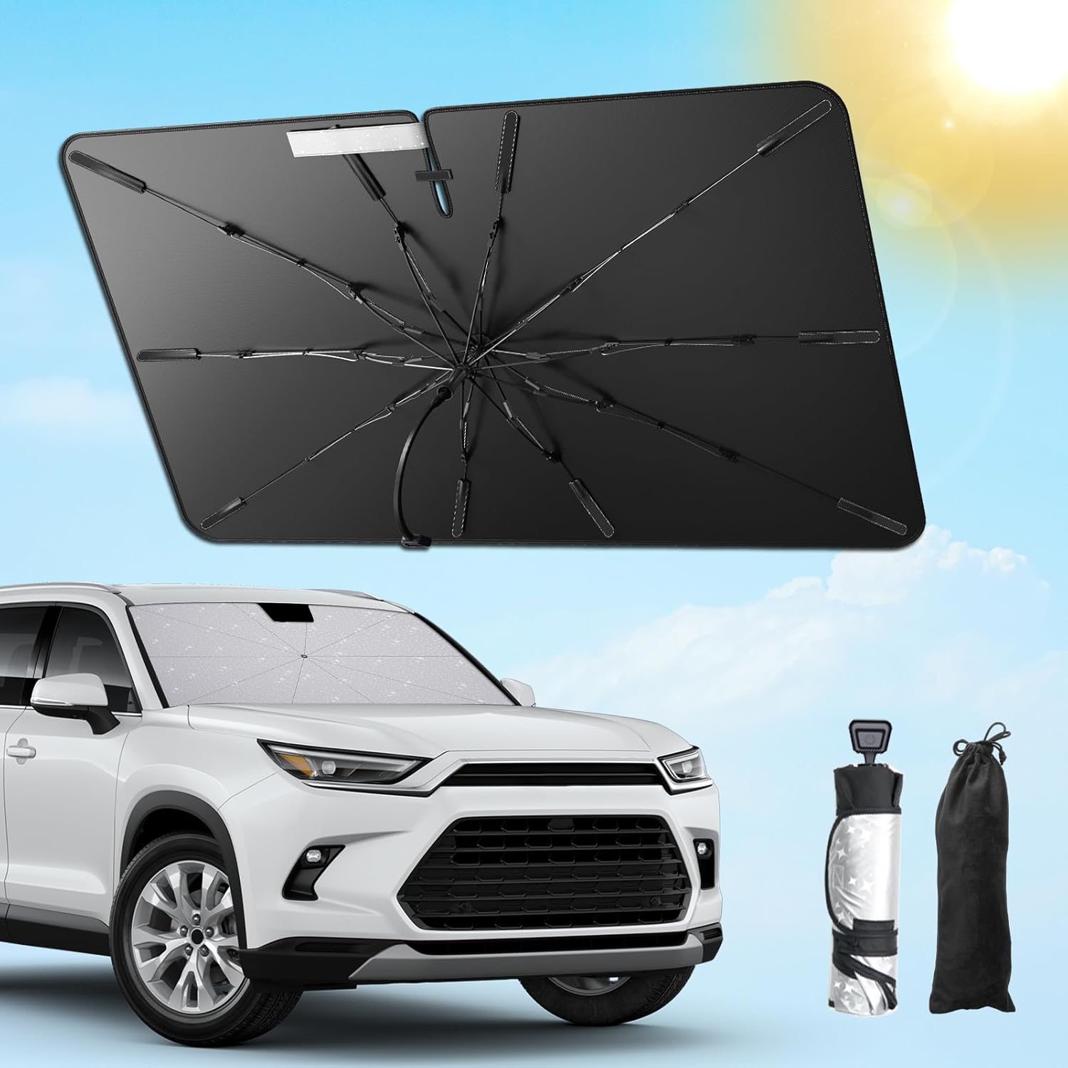 - 1. Sun & Heat Insulation: Windshield Umbrella Sunshade for 2024 2025 Toyota Grand Highlander Accessories, 99.9% UV protection, upgraded wrinkle-resistant fabric reflects heat, keeps car cool. Protects interior from fading & cracking, ensuring comfort on hottest days