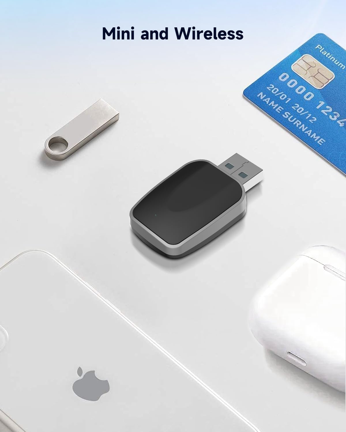 Mini Wireless CarPlay Adapter for iPhone 2025 Upgraded, Plug & Play, No Latency, USB-A/C Support, Compatible with iOS 10+ & Cars 2016+