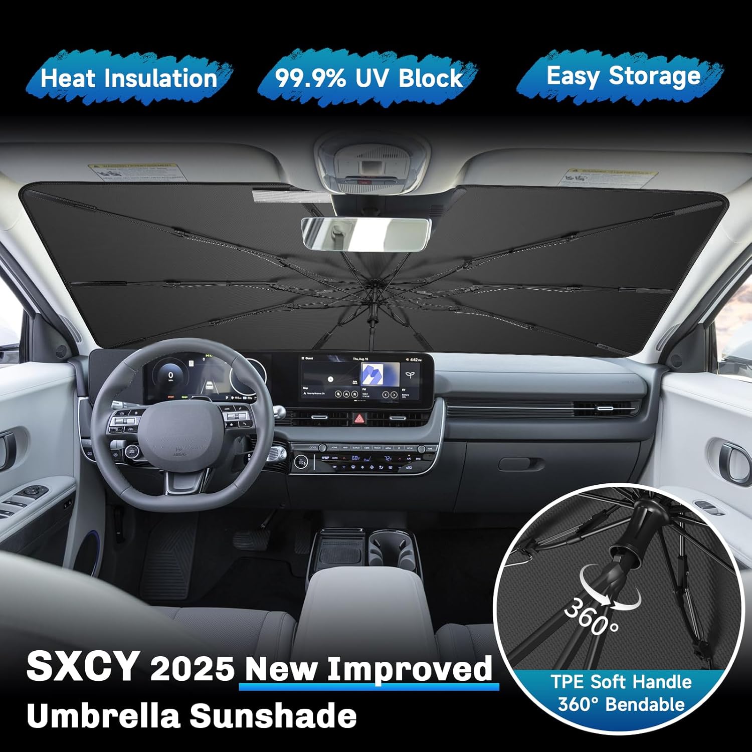 - 1. Sun & Heat Insulation: Windshield Umbrella Sunshade for 2022 2023 2024 2025 Hyundai Ioniq 5 Accessories, 99.9% UV protection, upgraded wrinkle-resistant fabric reflects heat, keeps car cool. Protects interior from fading & cracking, ensuring comfort on hottest days