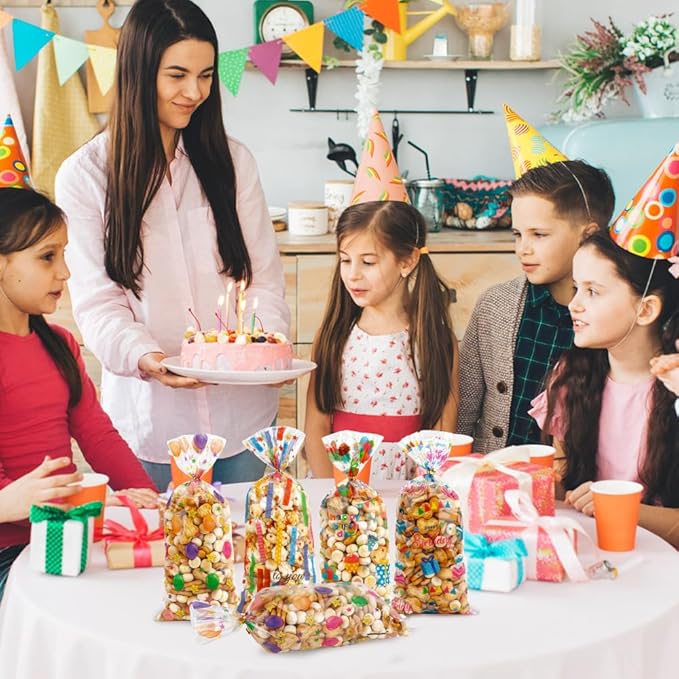 - Material: This birthday goodie bags are made of high-quality plastic, non-toxic and odorless, not easily damaged, and comes with a golden zip tie for convenient and practical use