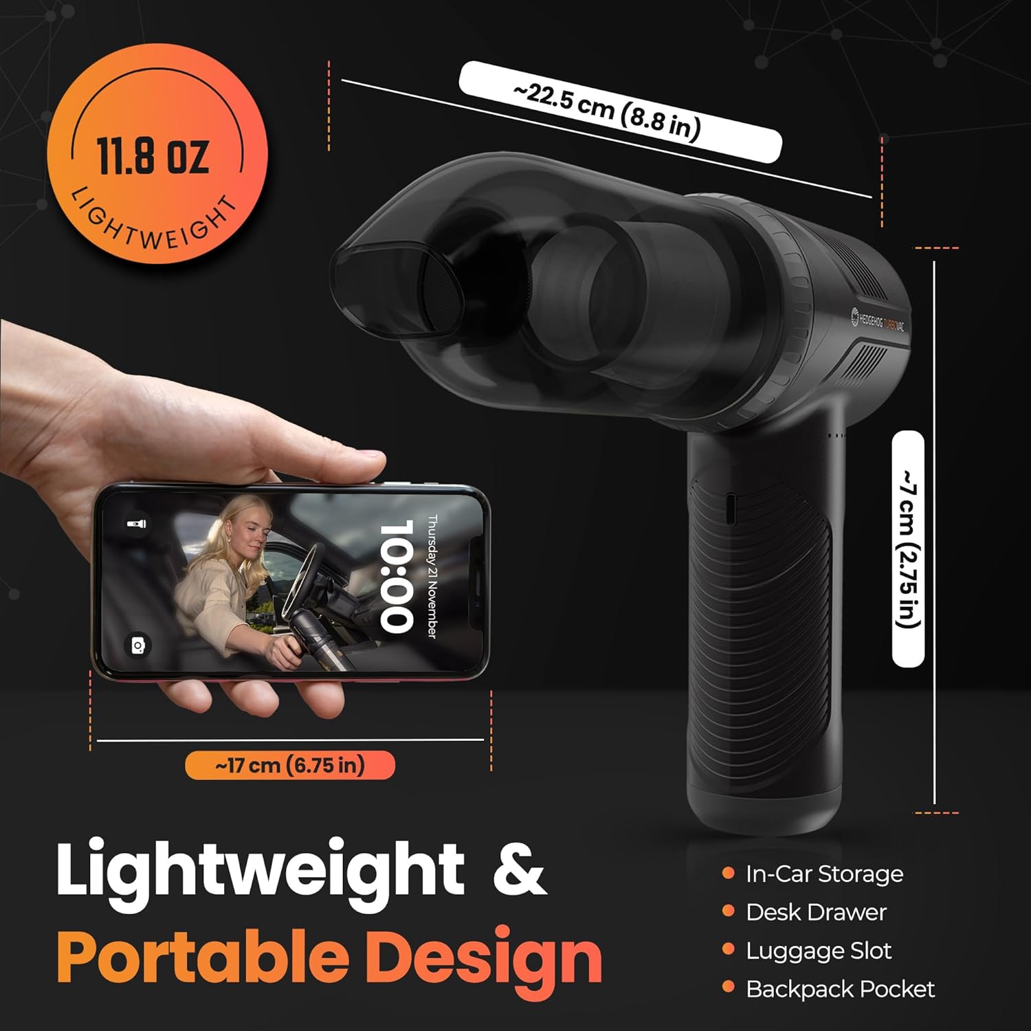 - Lightweight & Portable - This hand held car vacuum blower weighs only 1.4 lbs for easy carry and storageโideal for car cleaning, home use, or camping on the go
