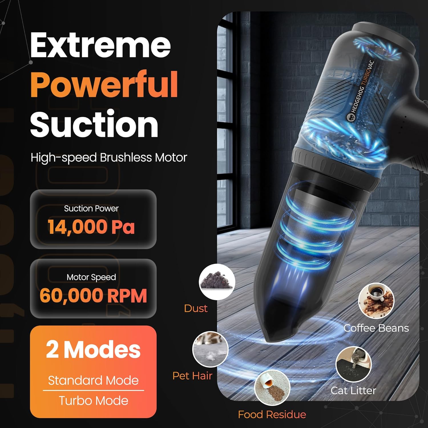 - 3-in-1 Versatility โ The Hedgehog TurboVAC handheld car vacuum cleaner is more than just a vacuum! With Hedgehog patented technology, works as a powerful vacuum, air blower, and air pump-ideal for cleaning debris, inflating mattresses, and blowing out hard-to-reach dust