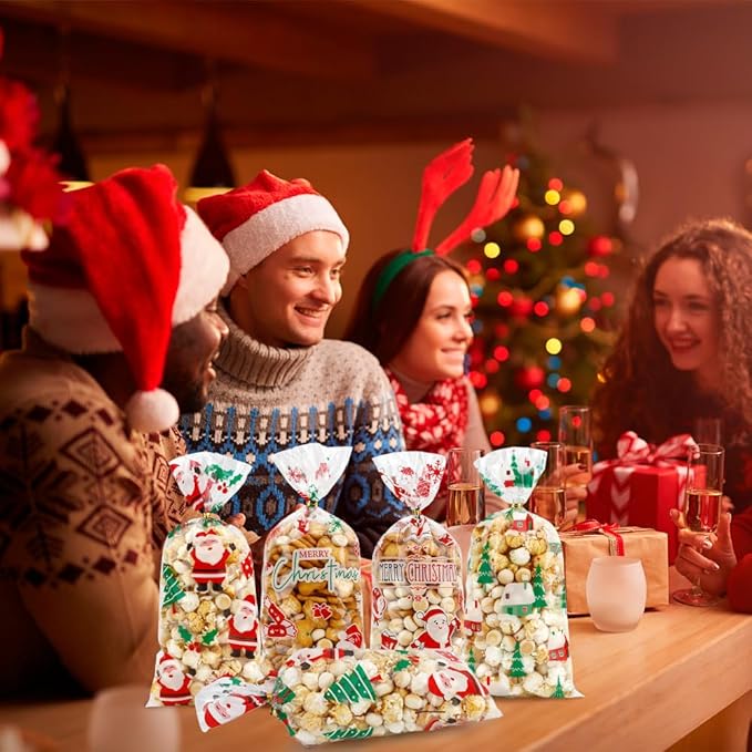 - Material: This christmas candy bags are made of high-quality plastic, non-toxic and odorless, not easily damaged, and comes with a golden zip tie for convenient and practical use