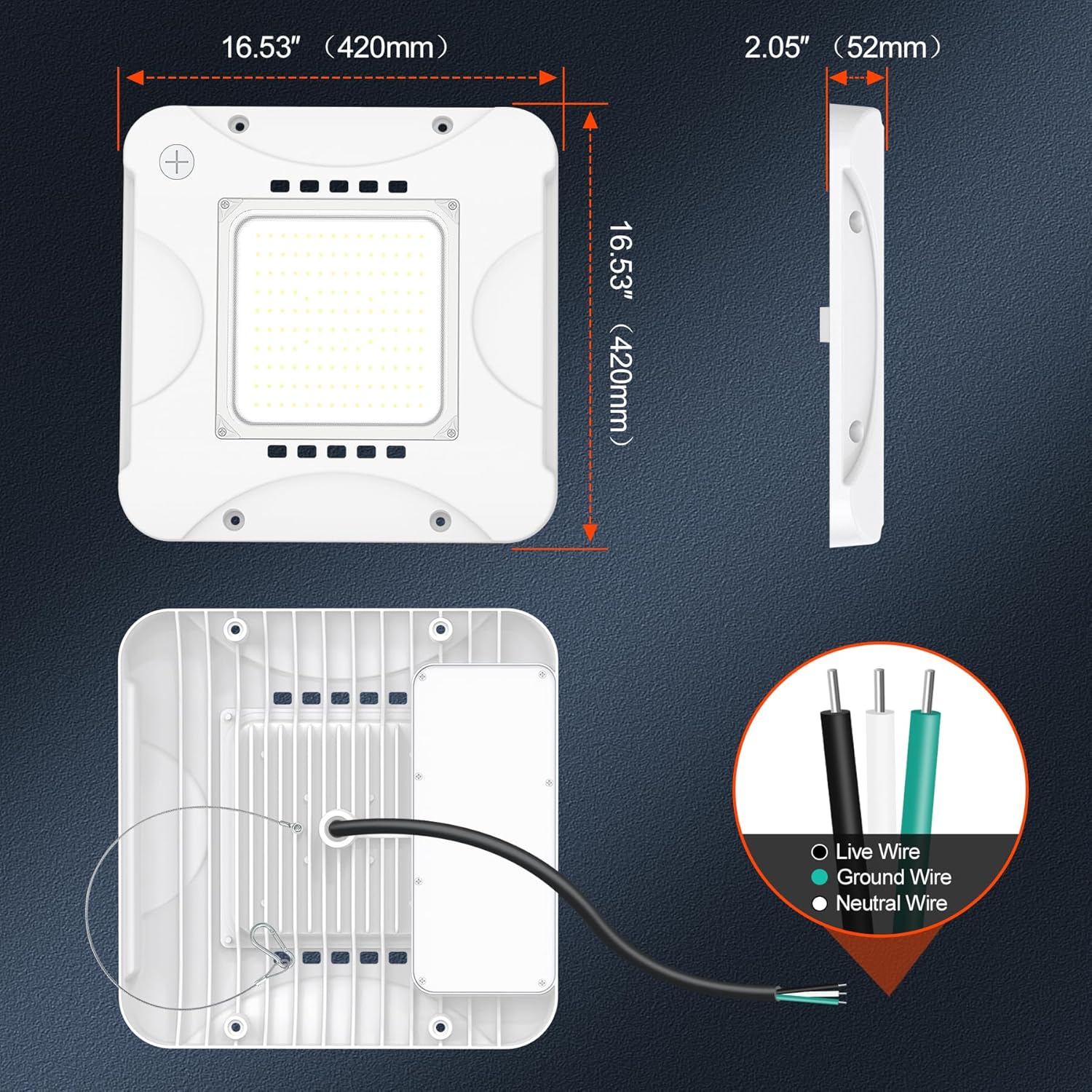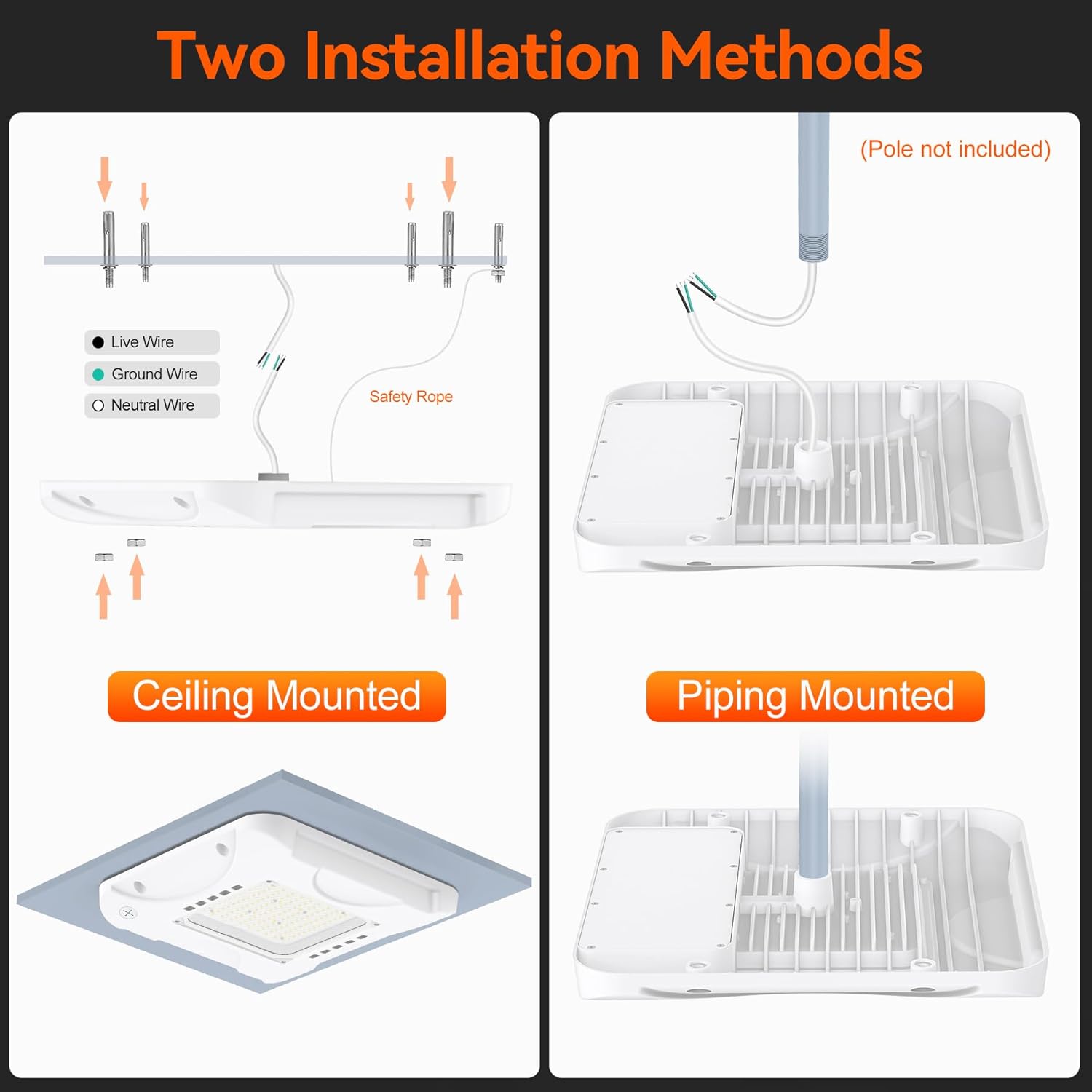 - 【Easy Installation】The canopy light for gas station have 2 Types of installation method, upports pendant mounting or direct surface mounting. Note: Pole-pendant Mounted(Pole not included), Turn off the power before installation