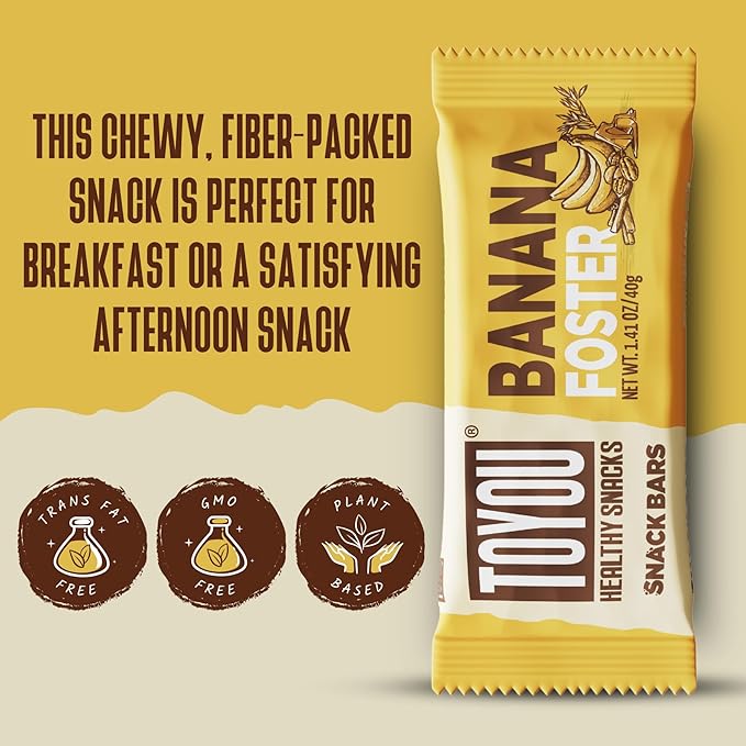 ToYou Chewy Fruit and Nut Bars - Healthy Protein Snacks | Banana Foster - 1.41 Ounce (Pack of 12) | Soft Chewy, Fiber-packed Granola Bars for Adults and Kids, Made with Natural Ingredients