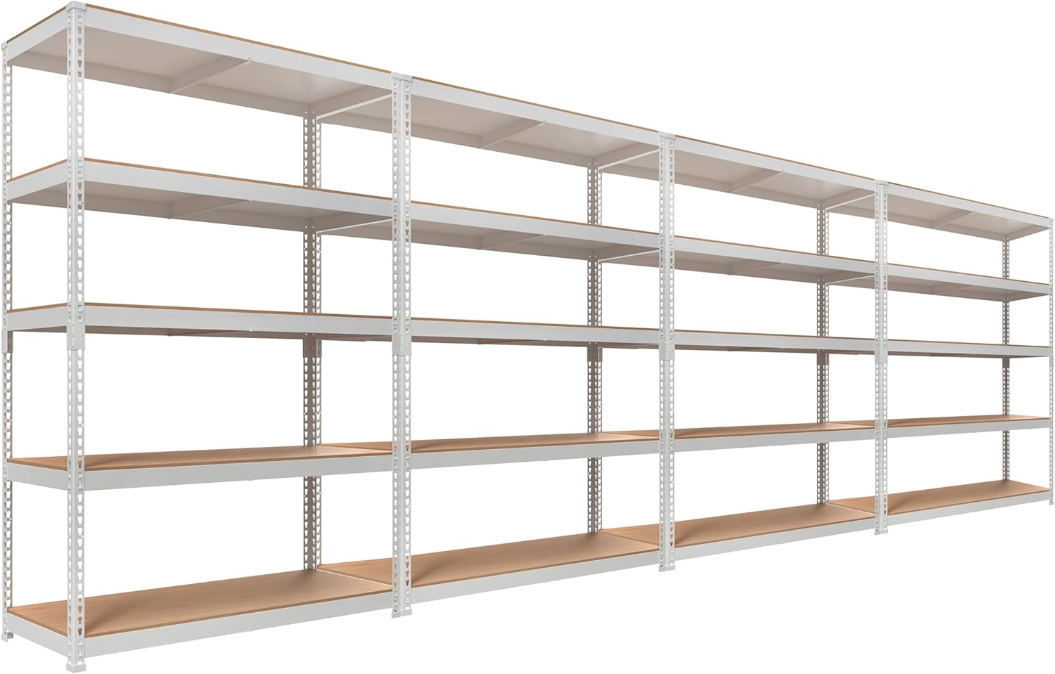 HOMEDANT White 5 Tier Laminated Boltless Heavy Duty Garage Storage Adjustable Wide Size Metal Shelving Unit Utility Rack Shelves Organization Shelf Shed Warehouse 47.7" W x 18.2" D x 71.3" H 4Pack
