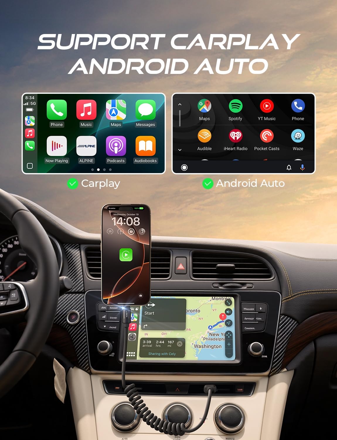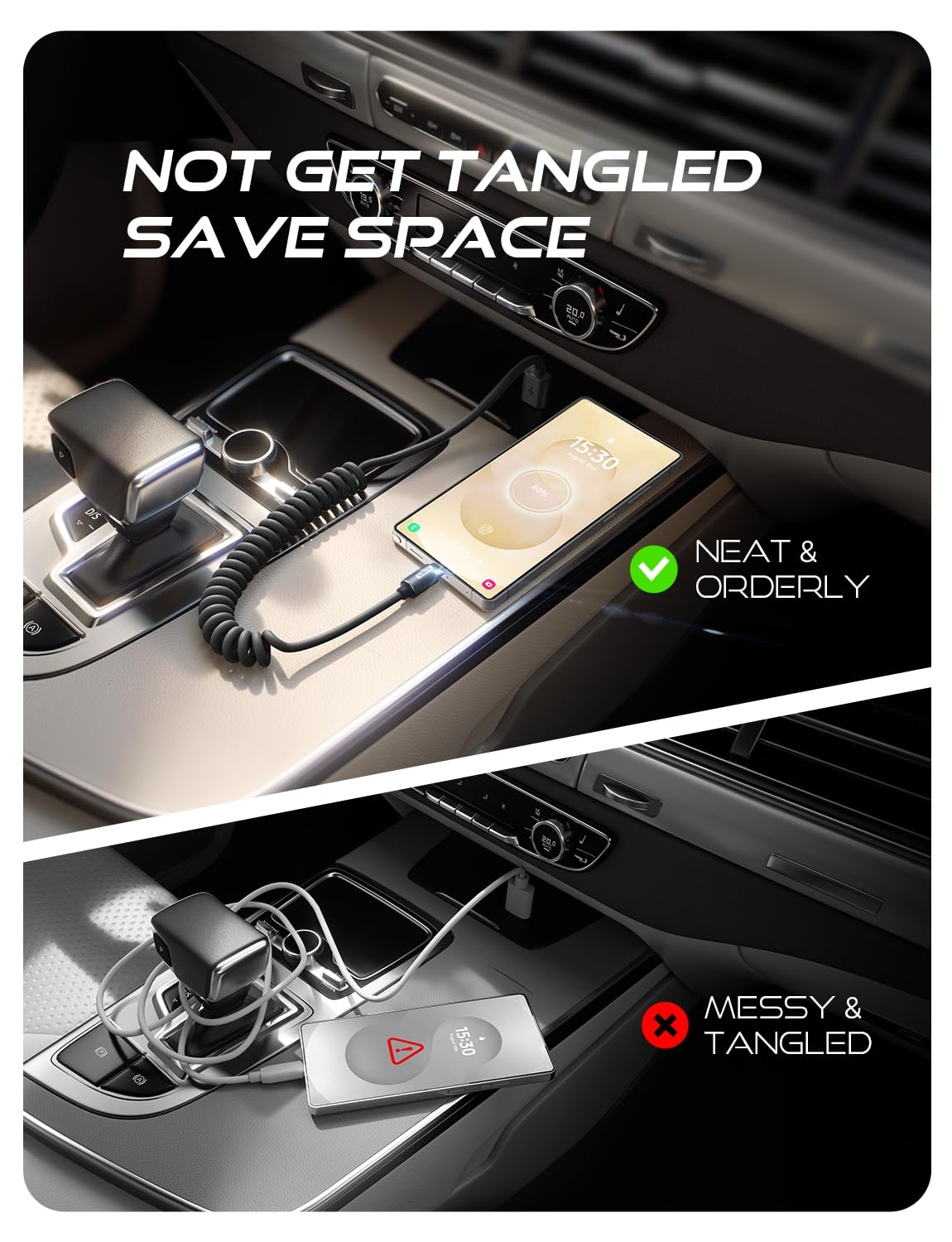 - 【Neat & Safe Driving Companion】Are you tired of the messy cables in your car, and want to make your center console look neater? Carplay cable unique telescopic spring cable design avoids the drawbacks of ordinary straight cables, such as getting stuck on the gear lever or hanging near the accelerator/brake pedal that affect driving operations. It delivers a more focused and safe driving experience