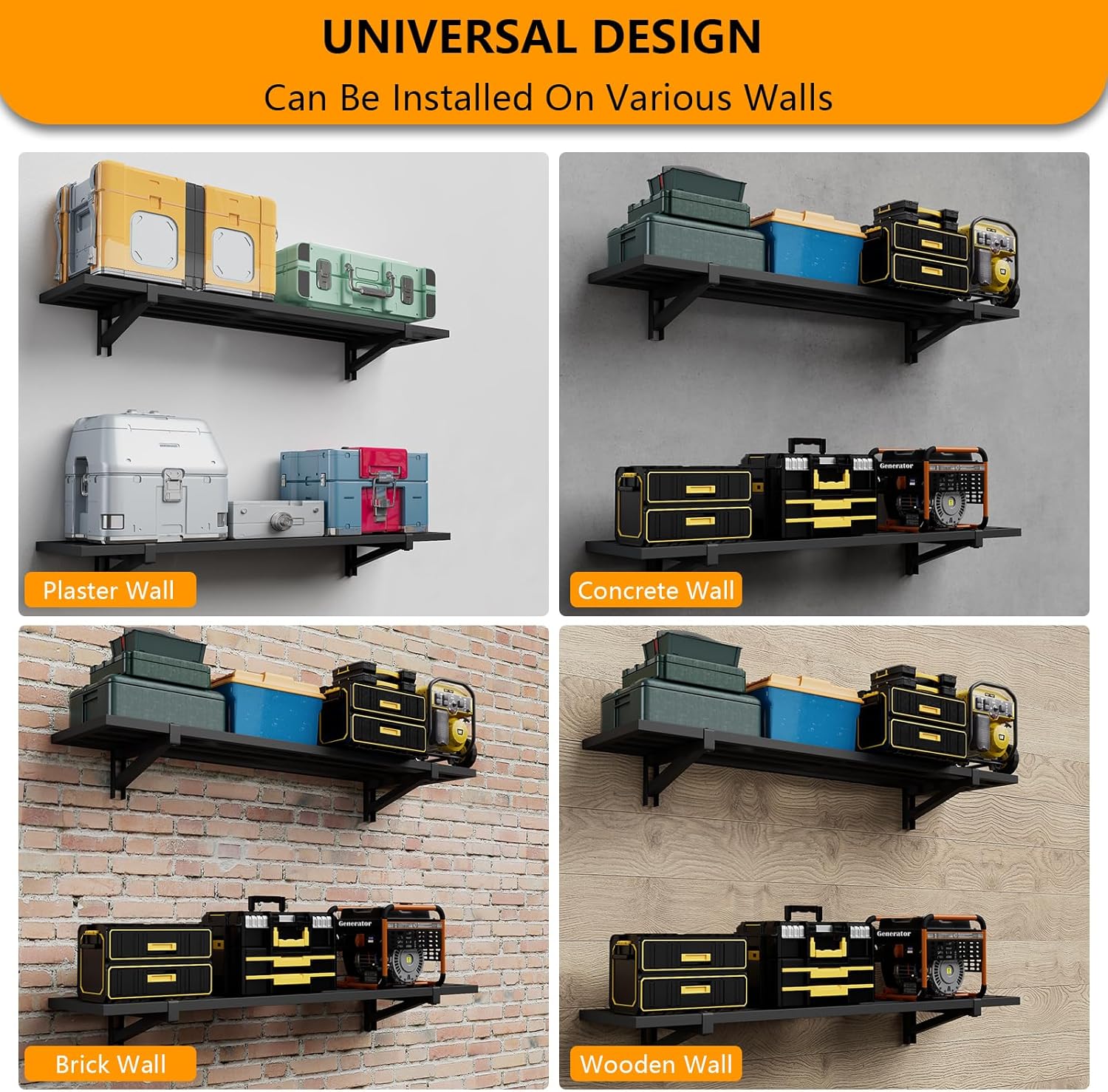 - Premium Craftsmanship: This garage wall shelving is crafted from a single steel sheet, precision-stamped and folded for strength. Unique high-density hole design enhances functionality while delivering a sleek, modern aesthetic.