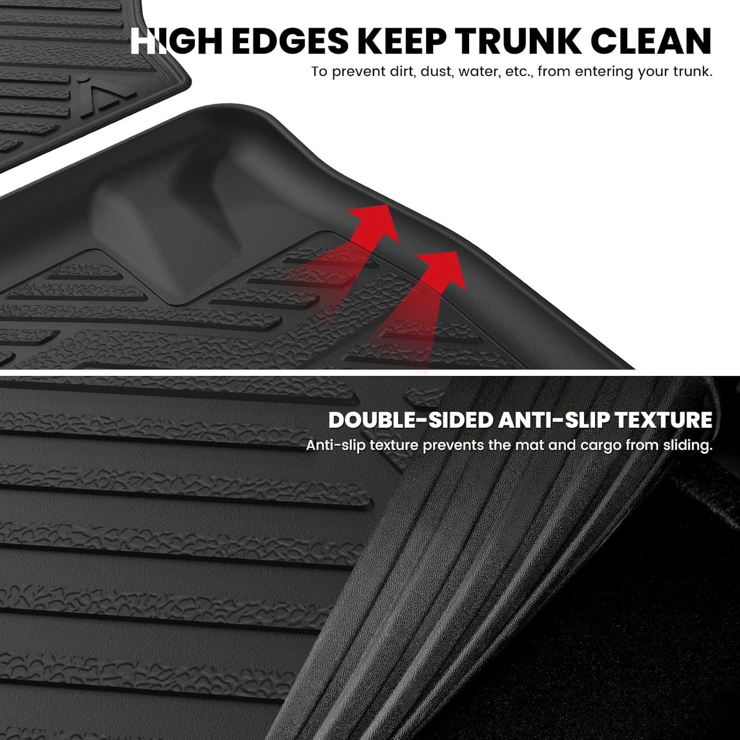 - FIRM YET FLEXIBLE - These durable Grand Caravan & Town & Country Cargo mats Raised edges all the way around and have been upgraded to the use of innovative material, allowing our Trunk liners to last long, and way more durable that they won't curl or end up buckling.
