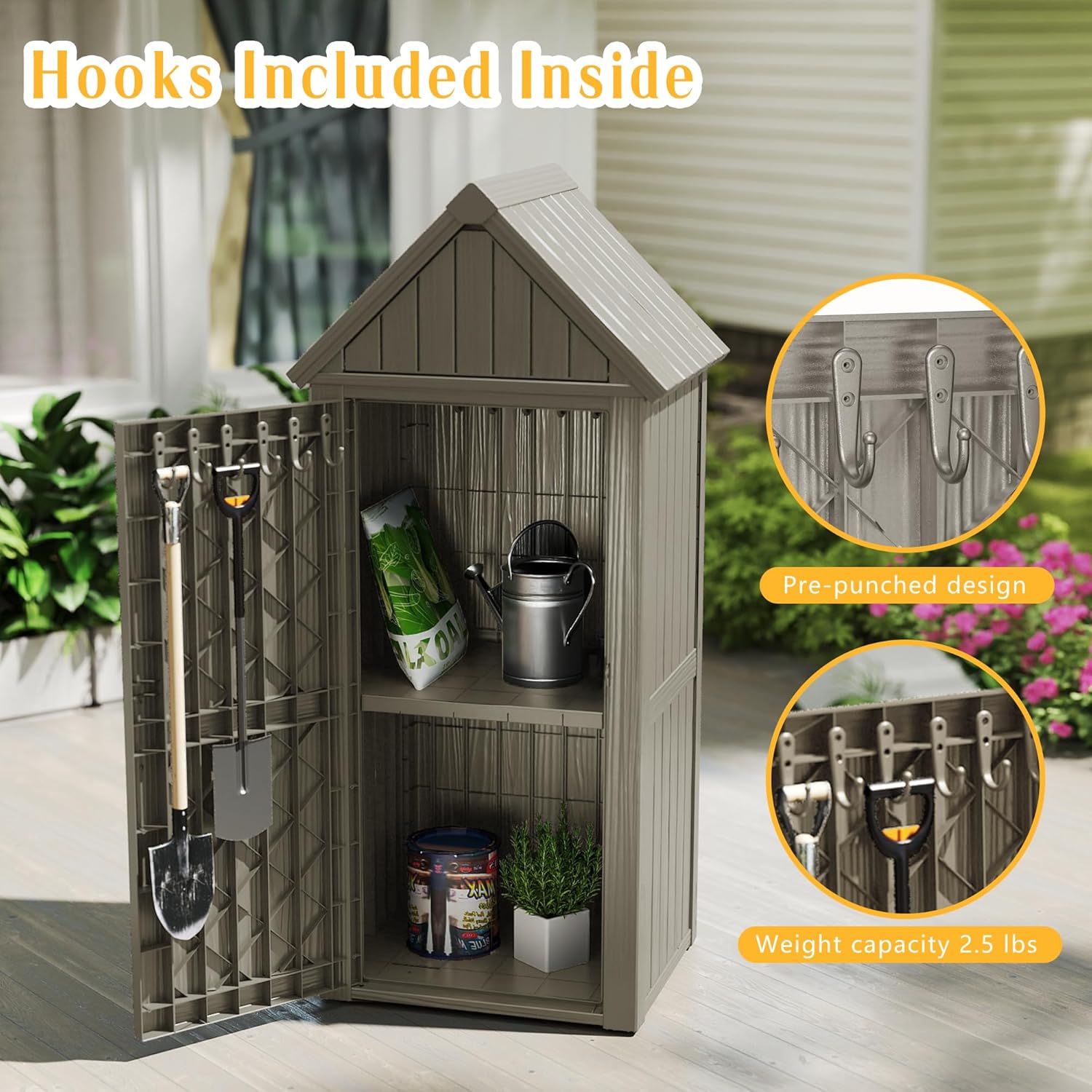 - Ventilation System:Proper air circulation is crucial to prevent moisture buildup and rusting of tools. This tool shed features a well - designed ventilation system that keeps the interior dry and fresh, extending the lifespan of your tools.