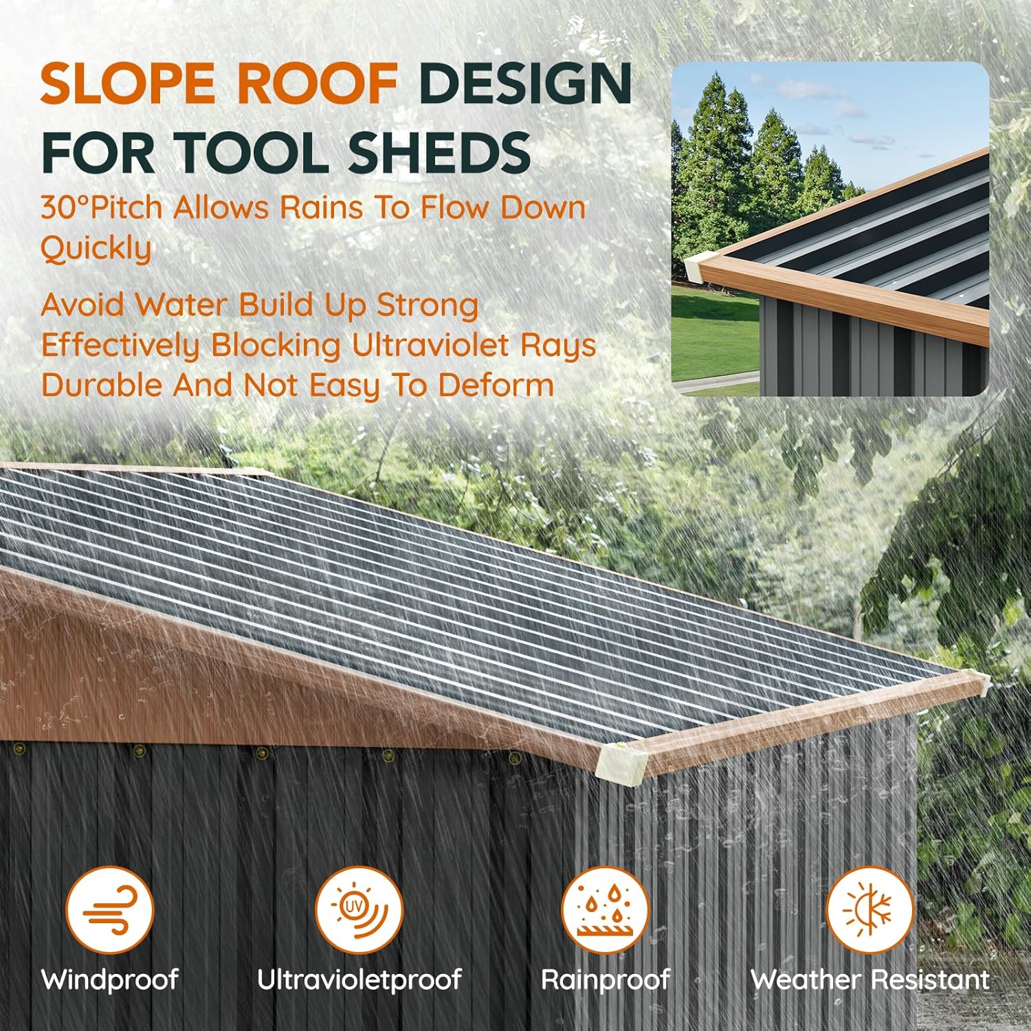 - 【Security & Safety】 Verdeluxe metal shed has a steel latch paired with a reinforced handle that clicks into a secure position, deterring both theft and unwanted visitors. The plastic edge guards and anti-collision corners eliminate sharp metal edges, making the shed kid- and pet-friendly—no more accidental scrapes or bruises.