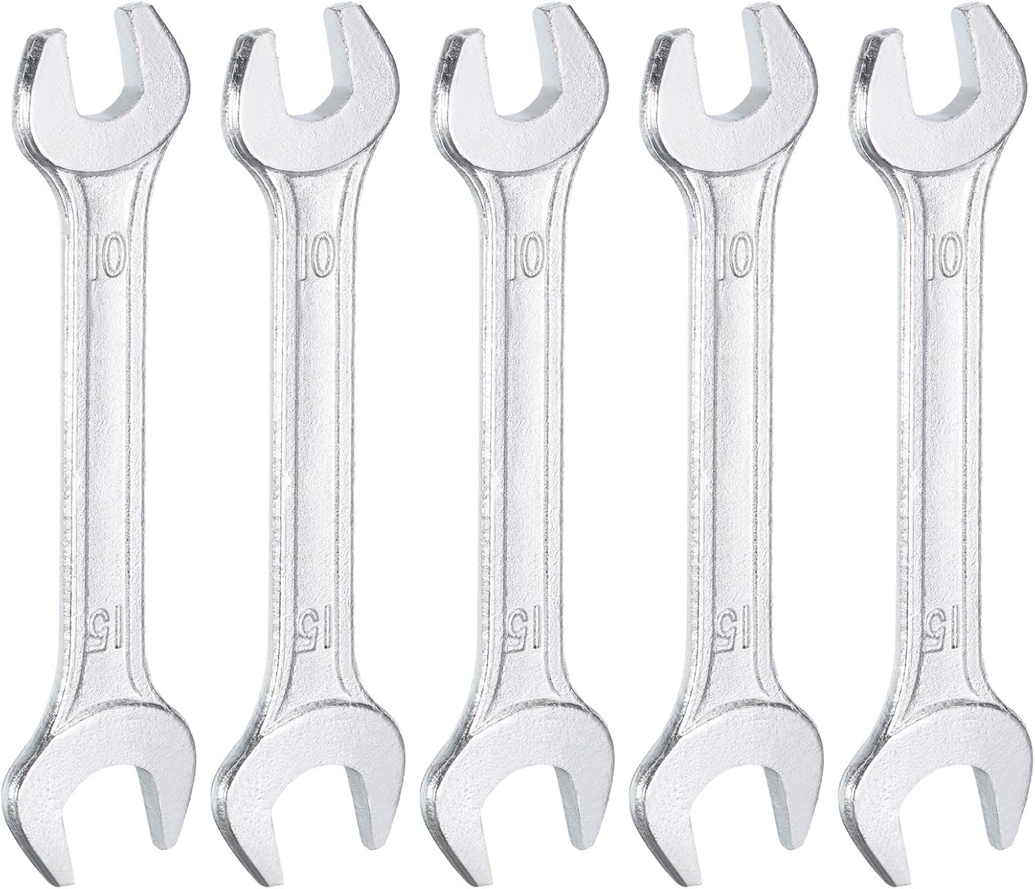 HARFINGTON 5pcs Double Open End Wrench 10mm x 15mm Metric 15 Degree Offset Angle Small Flat Head Wrench Galvanizing Open Ended Spanner for Automotive Repair Furniture Assembly