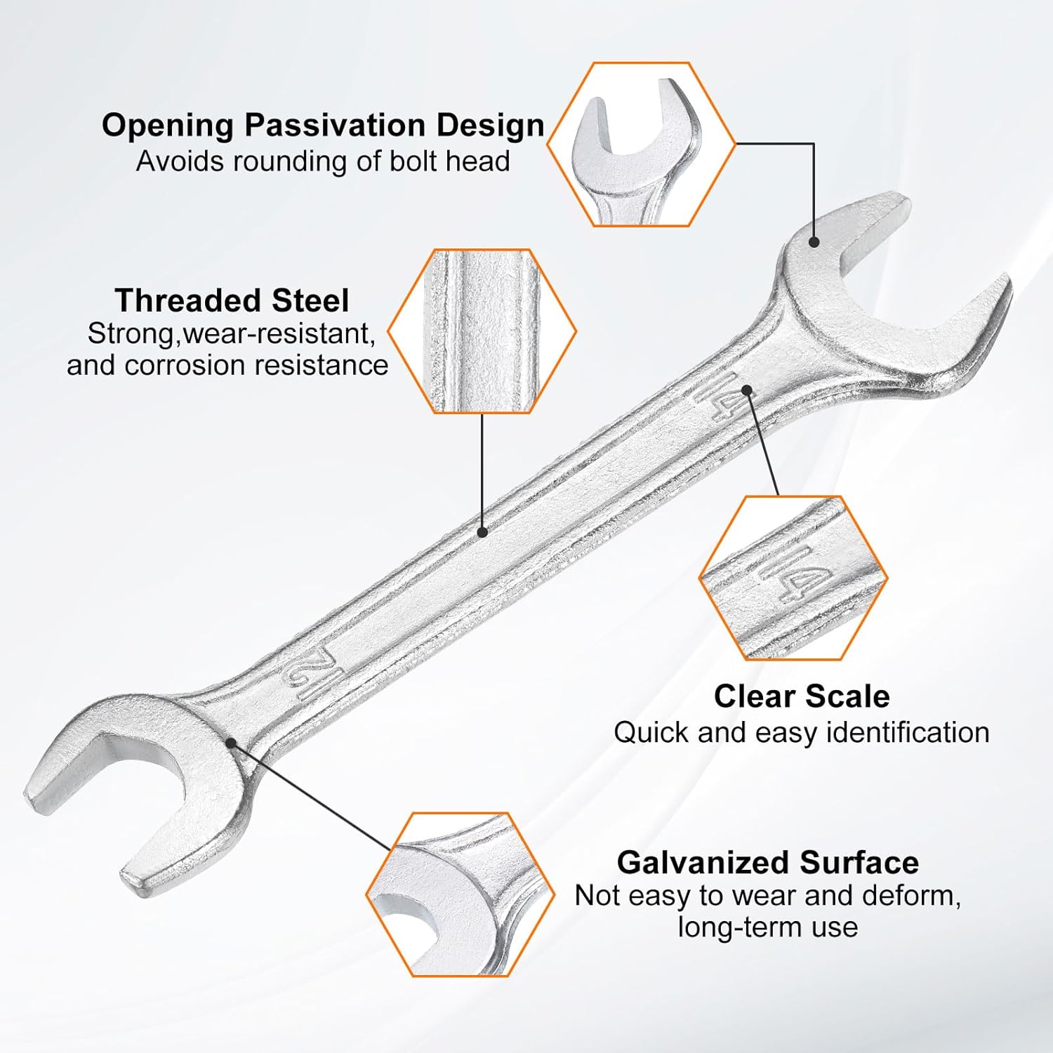 - Material - Our double open-end wrench is made of threaded steel with high hardness and excellent wear resistance. The surface galvanizing improves its wear resistance, keeps its surface smooth and reduces wear, is not easy to deform, and can be used for a long time.