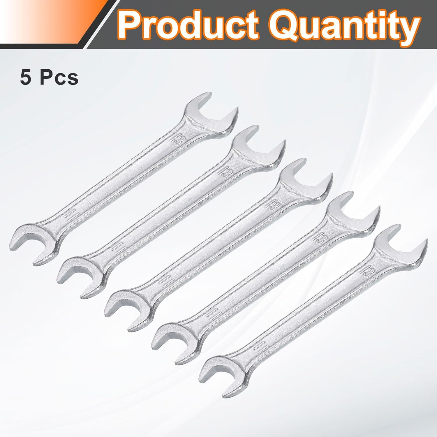 HARFINGTON 5pcs Double Open End Wrench 11mm x 13mm Metric 15 Degree Offset Angle Small Flat Head Wrench Galvanizing Open Ended Spanner for Automotive Repair Furniture Assembly
