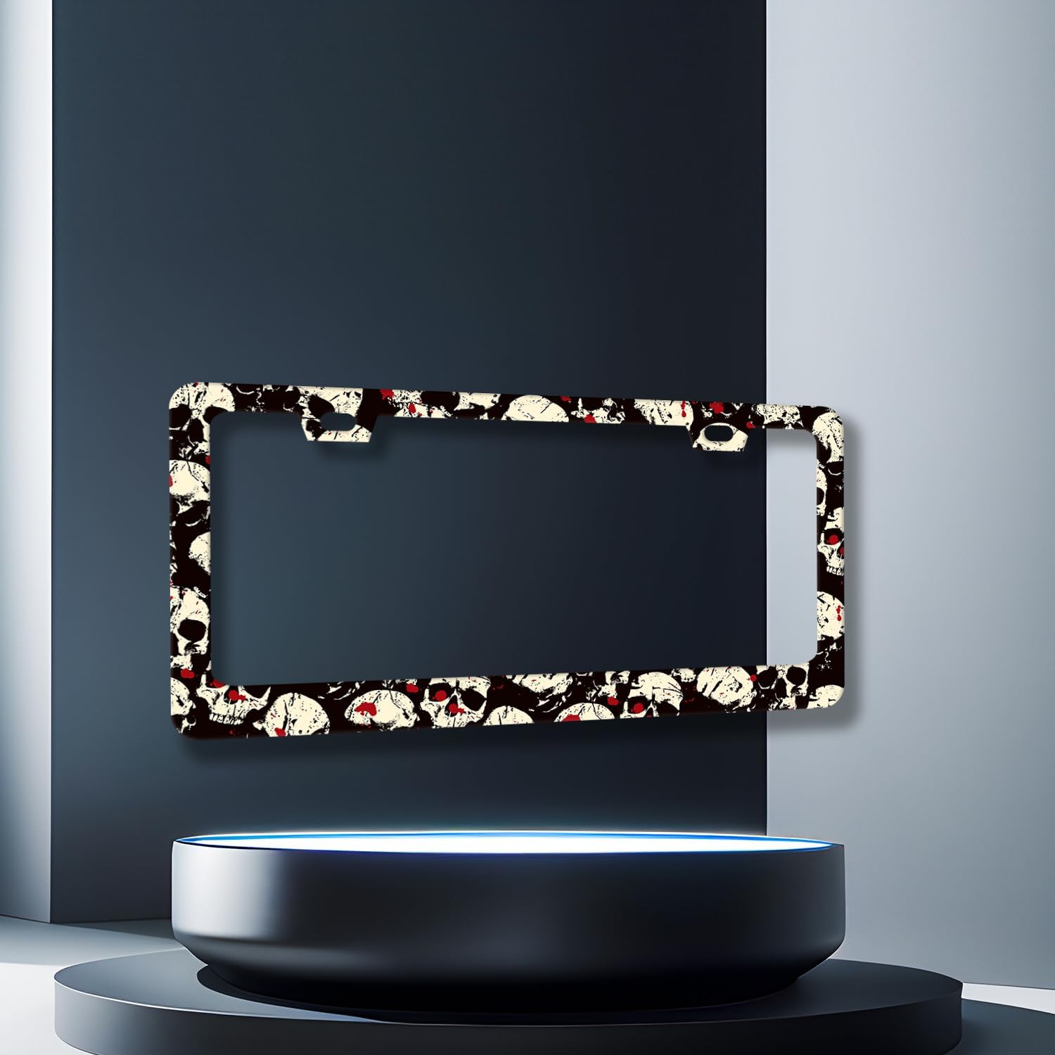 Skull License Plate Frame Skull Skeleton License Plate Holder Stainless Steel Funny Design Compatible with Standard License Plate for USA Canada 12.3" x 6.3" with 2 Screws