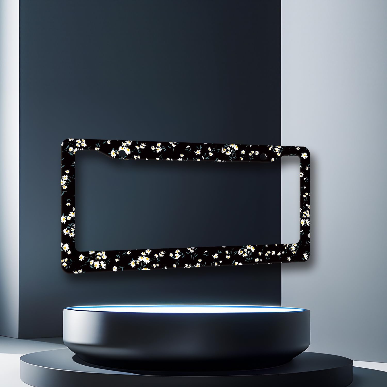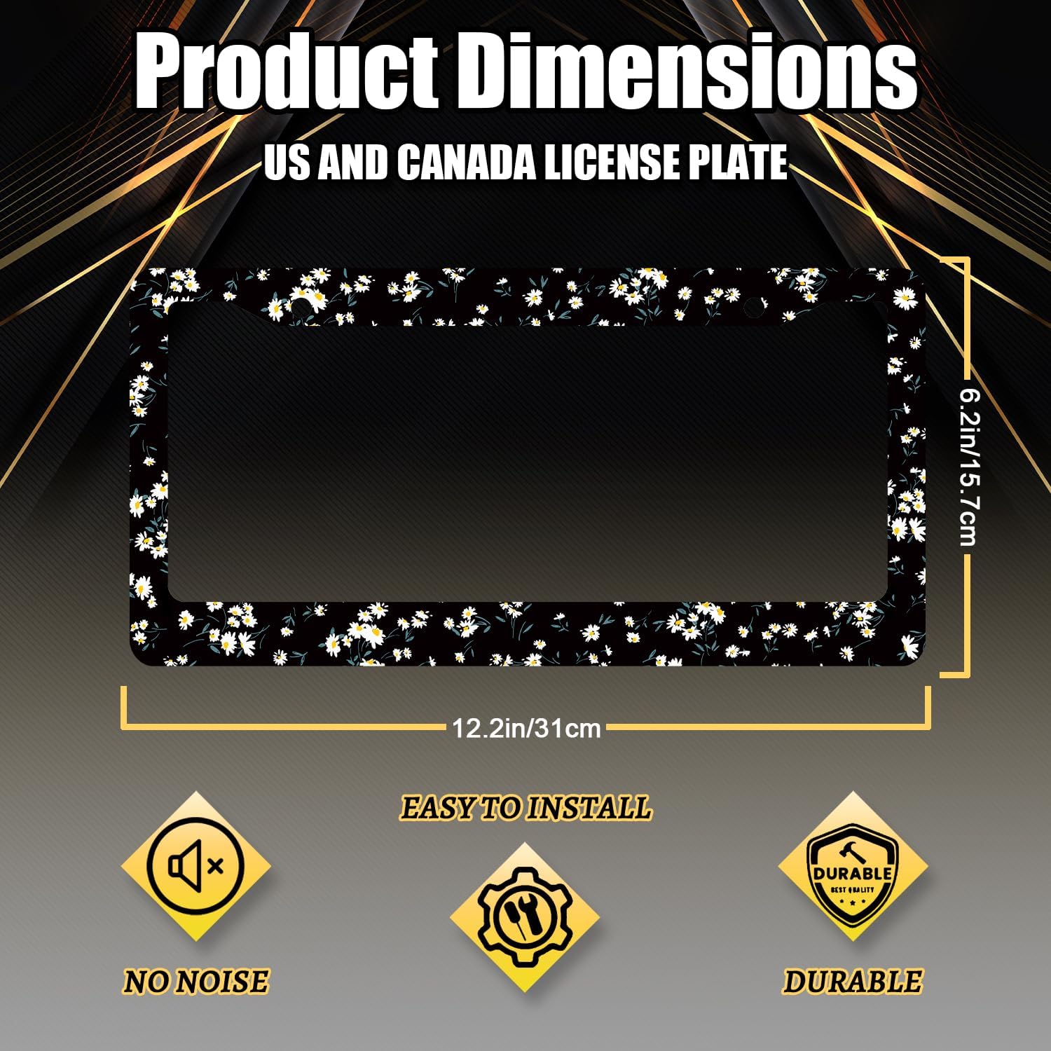 Daisy License Plate Frame Watercolor Daisies Flower License Plate Holder Stainless Steel Funny Design with 2 Holes and Screws 12.3" x 6.3"