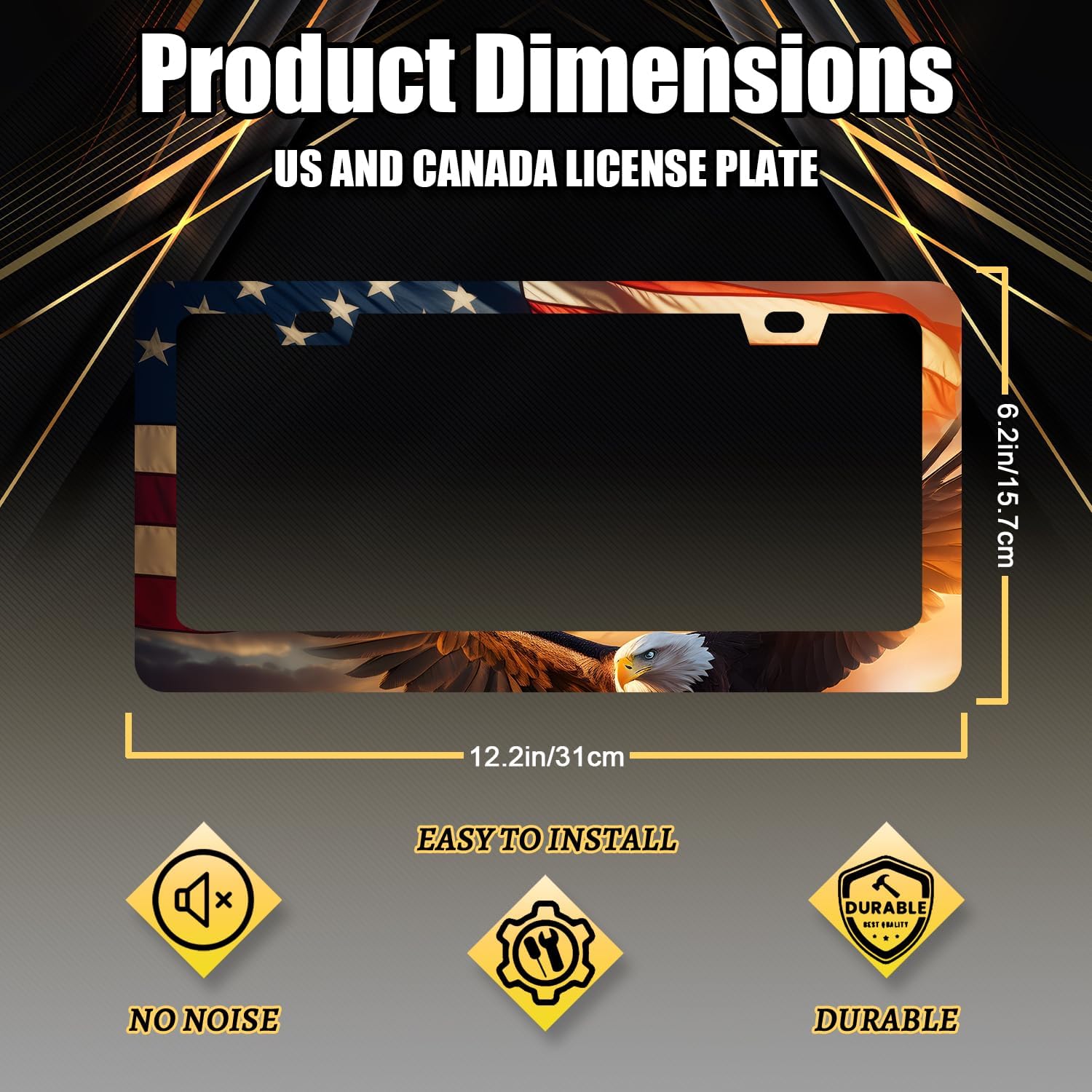 Patriotic Eagle License Plate Frame American Flag Eagle License Plate Holder Stainless Steel Colorful Car Accessories Decoration 6.3" X 12.3" with 2Holes Screws
