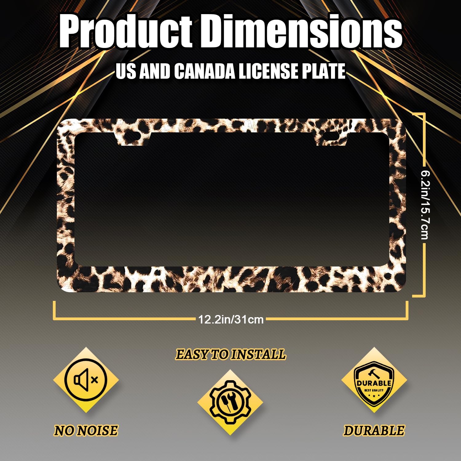 Brown Leopard License Plate Frame Animals License Plate Holder Stainless Steel Colorful Car Accessories Decoration 6.3"X12.3" with 2 Holes Screws