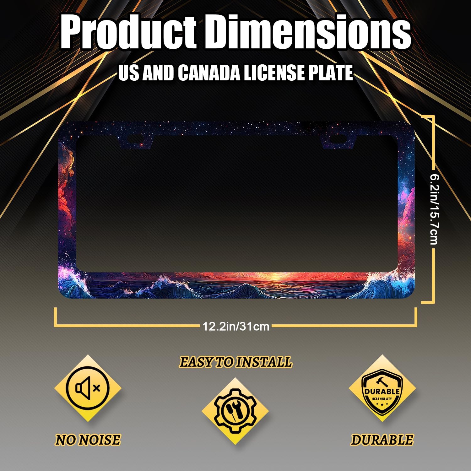 - Size: The size of the license plate frame is 12.3" x 6.3" , it fits all standard size US and Canada vehicle license plates.Fashion design frame fits perfectly on your car license plate.