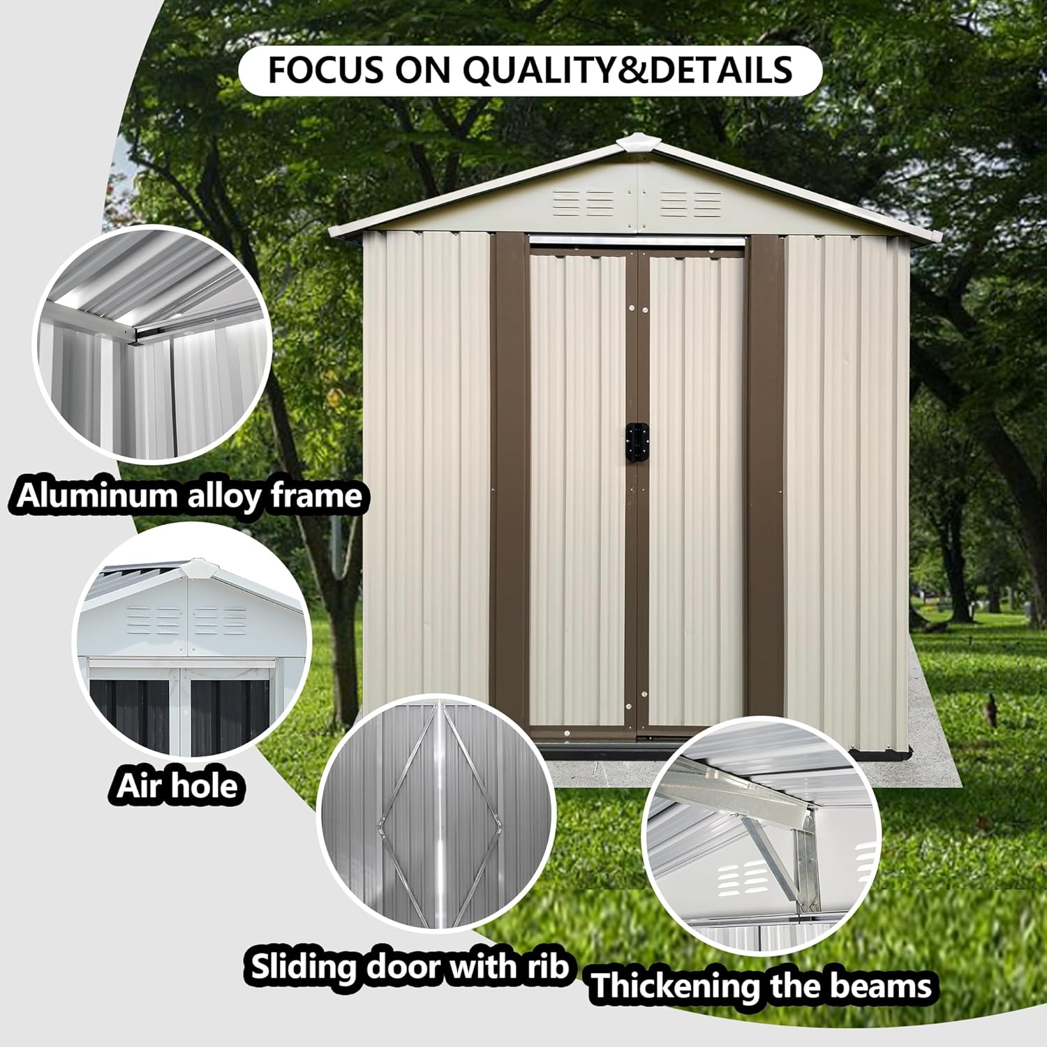 5x3 FT Outdoor Storage Shed, Metal Garden Shed with Lockable Sliding Doors, Small Outside Tool Shed with Sloped Roof & 4 Air Vents, Waterproof Storage Building for Backyard, Patio, Lawn, Cream White