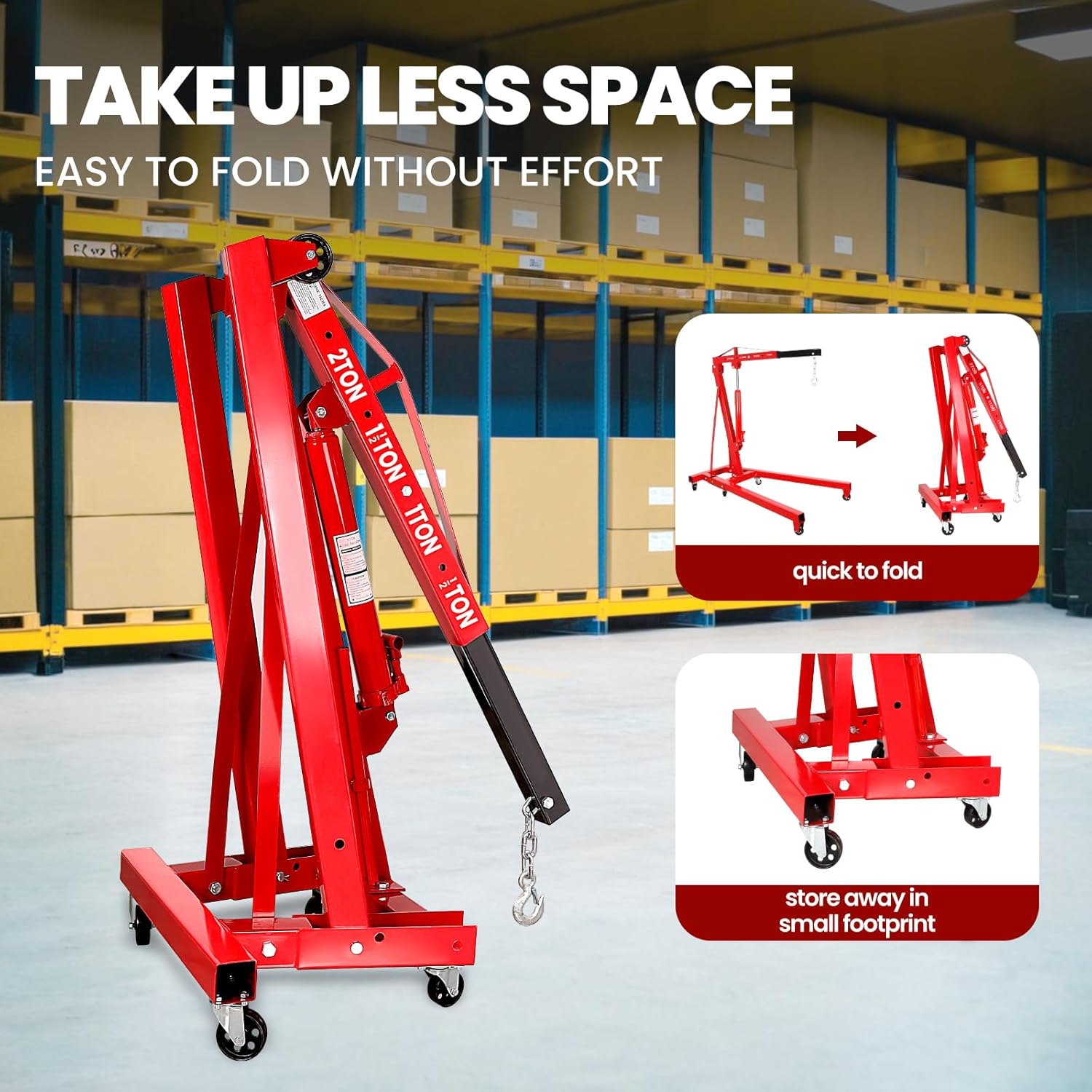 - 🌟 【Space-Saving Foldable Design】: Collapsible frame transforms this Cherry Picker into a compact storage solution without sacrificing 2.5-ton(5500lbs) lifting power. Perfect for workshops with limited space.