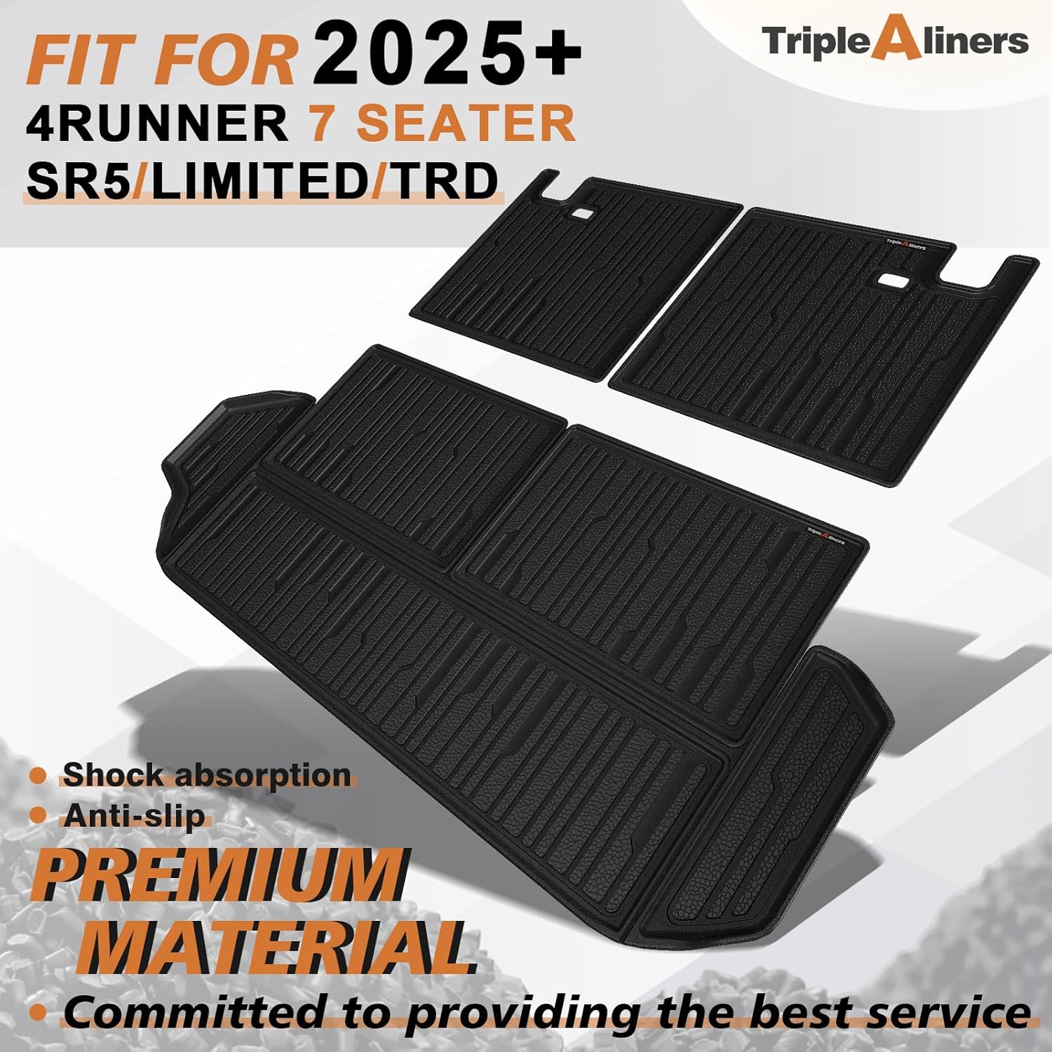 TripleAliners Trunk Mat & Rear Seatback Mat Fit for Toyota 2025 4Runner All Weather TPE Liners Accessories Custom Fit 6th Generation 4Runner TPE Heavy-Duty Covers(Only for 7 Seats)