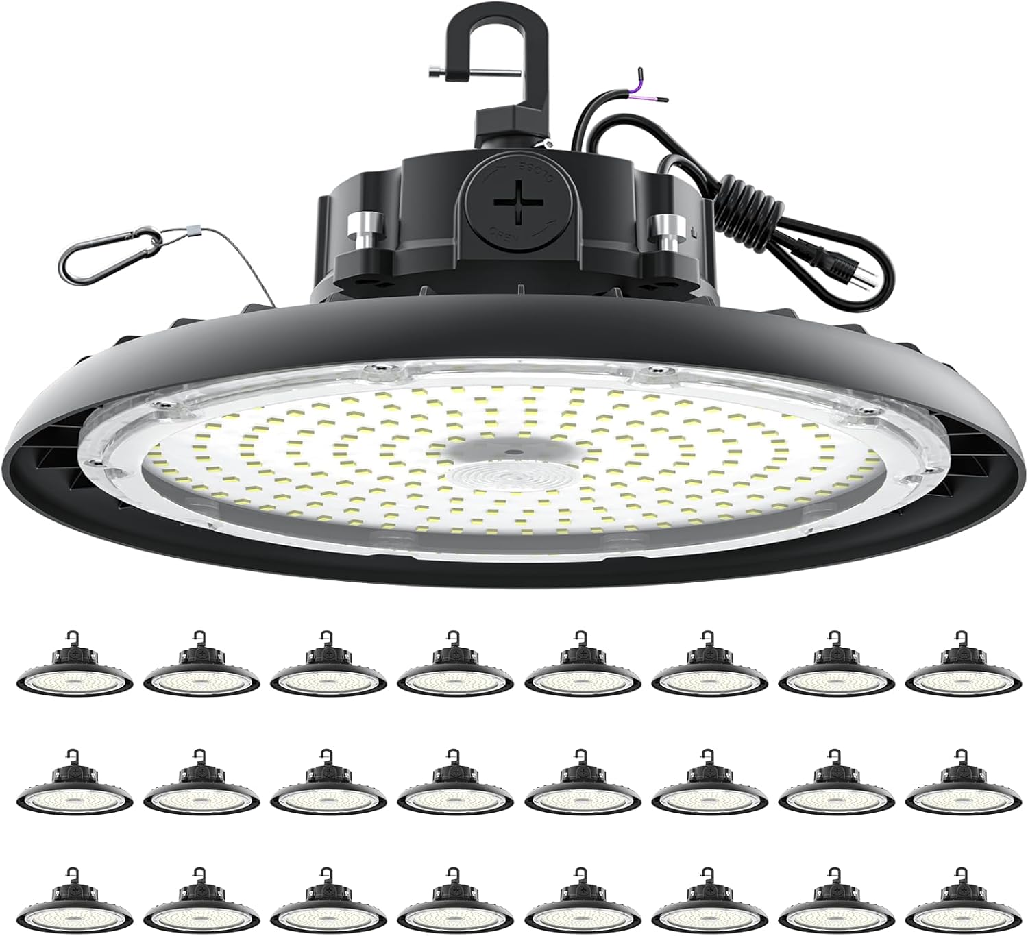 - 3-Minute Plug-&-Play Installation: No hassle, no complex wiring! The 110V standard US 3-prong plug and 5ft power cord enable instant use—simply plug in and enjoy. Free hooks & safety cables add flexibility for easy hanging in garages, barns, or retail spaces. For hardwired setups, professional installation is recommended.
