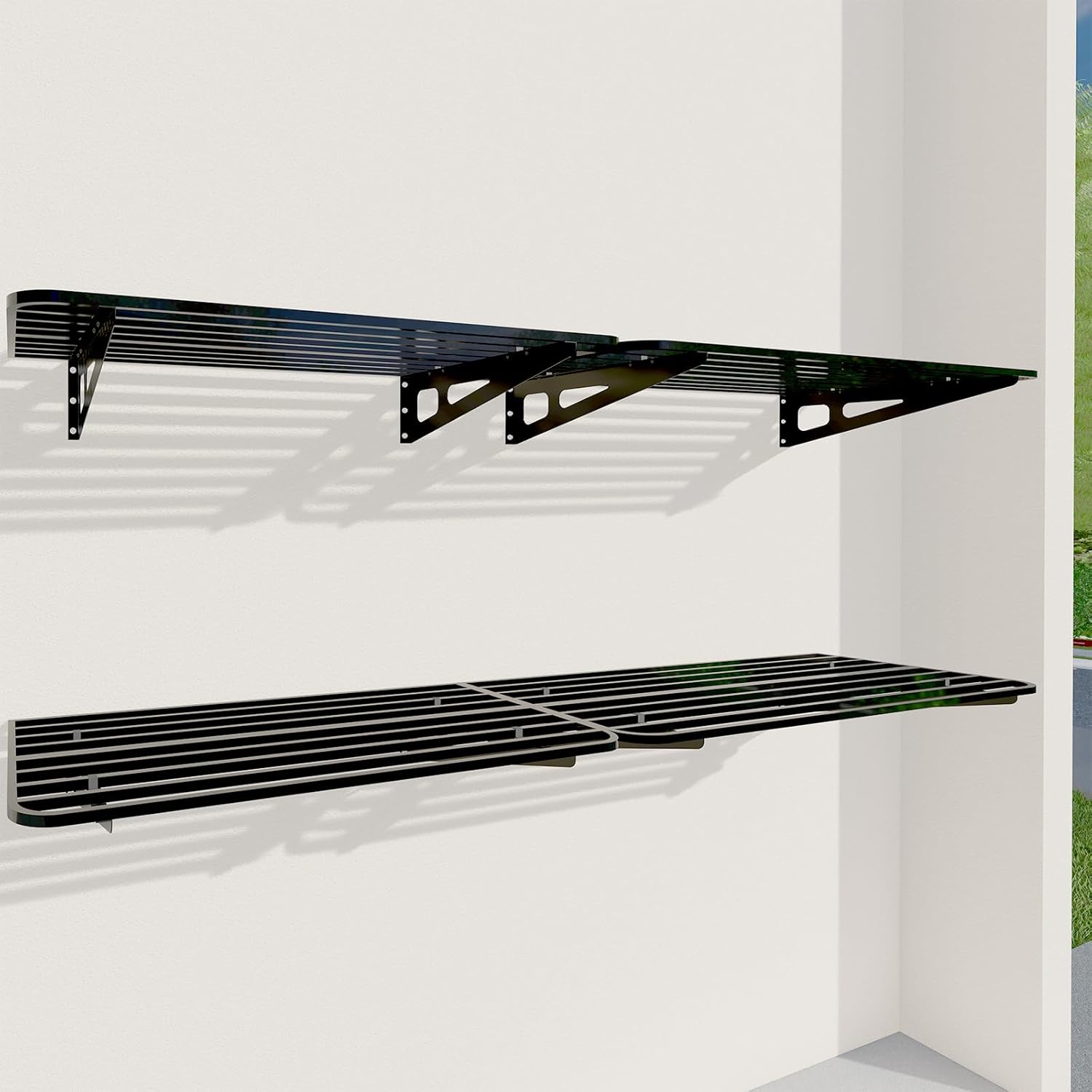 - ăGarage Shelvingă: Includes a 4-pack of wall mounted garage shelves, each measuring 24 x 48'IN, perfect for holding storage bins, boxes, sporting goods, tools, and more. say goodbye to cluttered garage space storage.