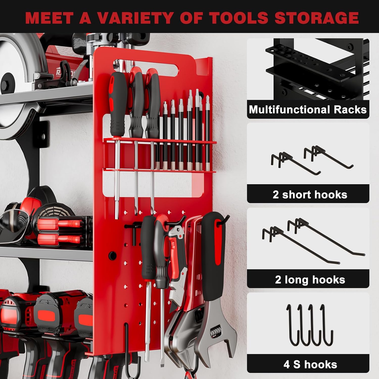 - Ideal for Garage, Workshop, or Tool Room: Perfect for various environments, whether you're organizing tools in your garage, workshop, or tool room. Its practical design adapts to multiple wall surfaces and provides a neat solution for all your tool storage needs
