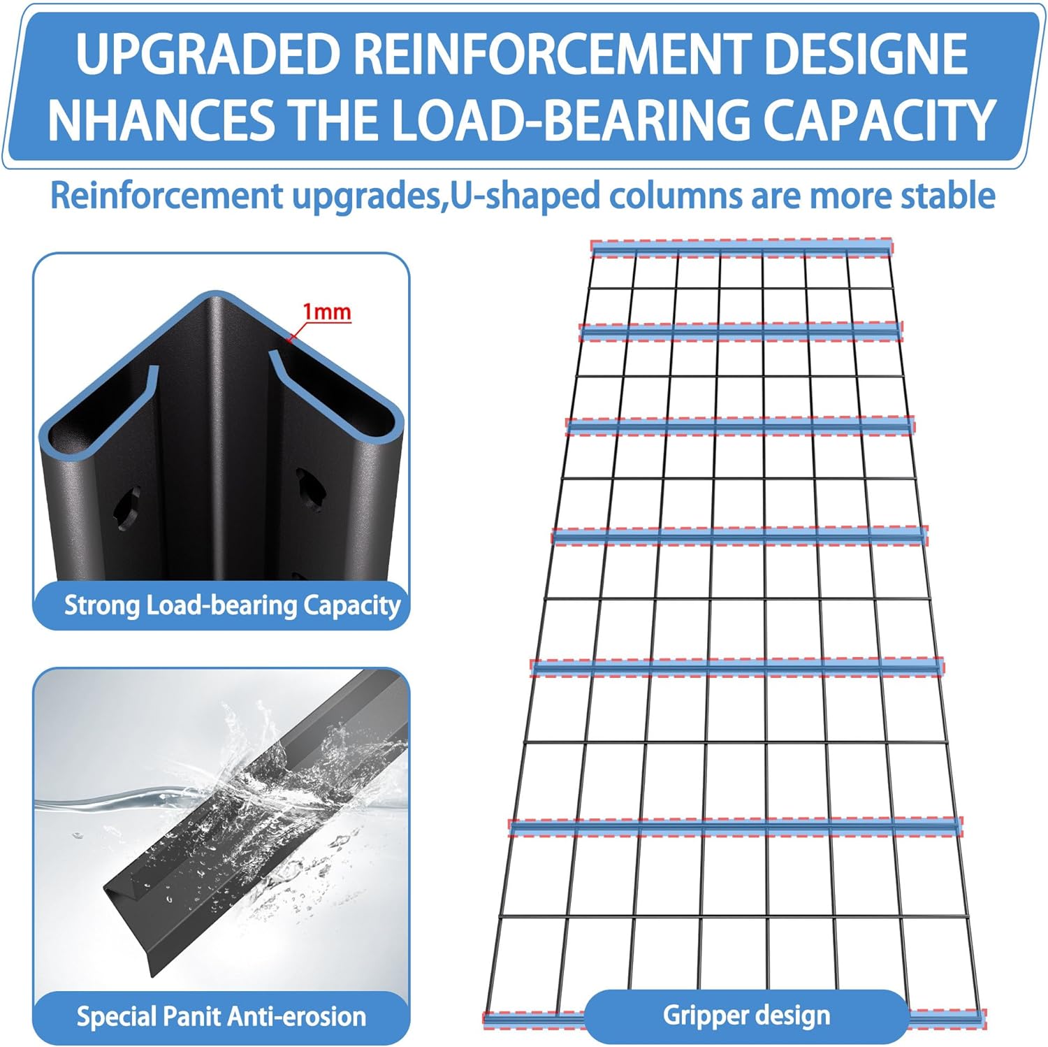 - Wire Mesh Shelves β Breathable & Moisture Resistant: Each shelf features a durable steel wire grid design that allows air to flow freely, helping prevent moisture buildup, dust collection, and odor. Perfect for storing tools, gear, or pantry items in garages, basements, or utility rooms.
