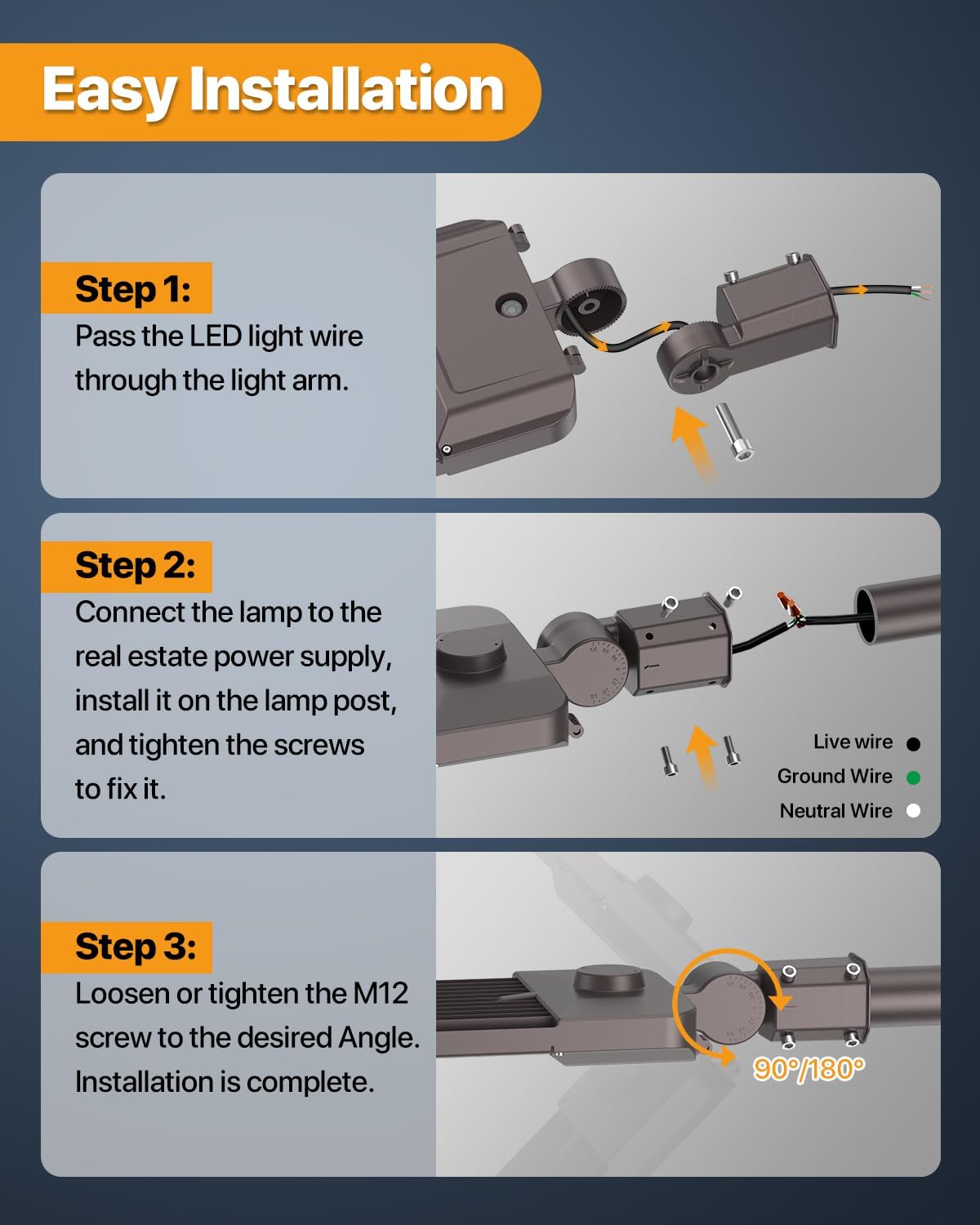 - ADJUSTABLE SLIP FITTER MOUNT: Compatible with round poles, adjustable from 0Β° to 180Β° for precise light direction. Hardware and instructions included for easy setup