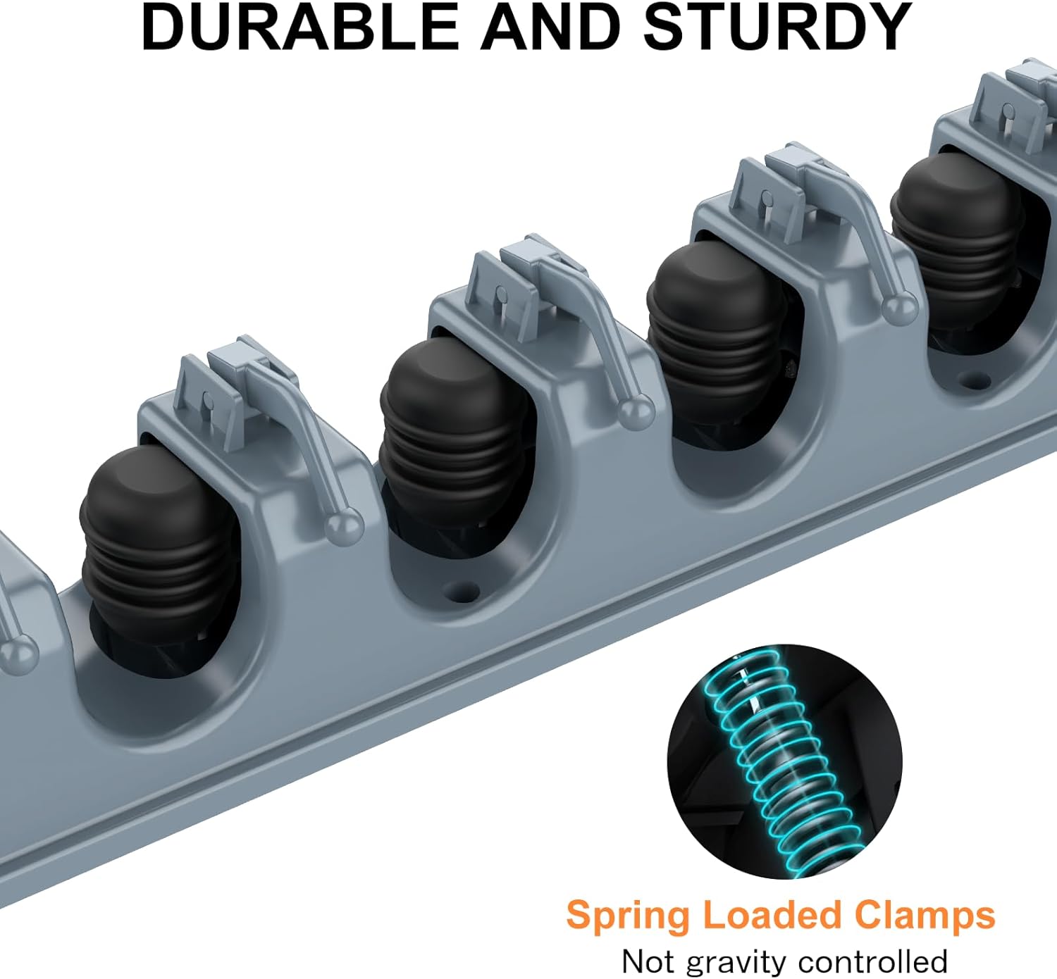 - STURDY AND DURABLE: Our wall mounted broom rack is made of high-quality materials. The broom rack is made of non-slip silicone material to effectively prevent scratches; the card slot uses a double-layer rubber clip to more firmly fix your cleaning and gardening supplies