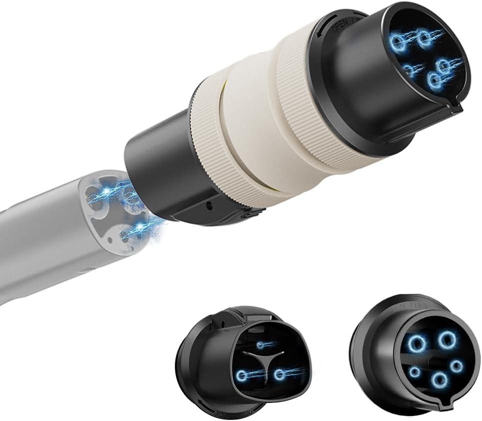 - ăSmall and PortableăAdopts a double rotation locking structure to ensure zero shaking connection of the charging port. Its intelligent compatible design perfectly adapts to Tesla/NACS charging piles, cincluding wall chargers, destination chargers and mobile chargers, realizing seamless connection between.