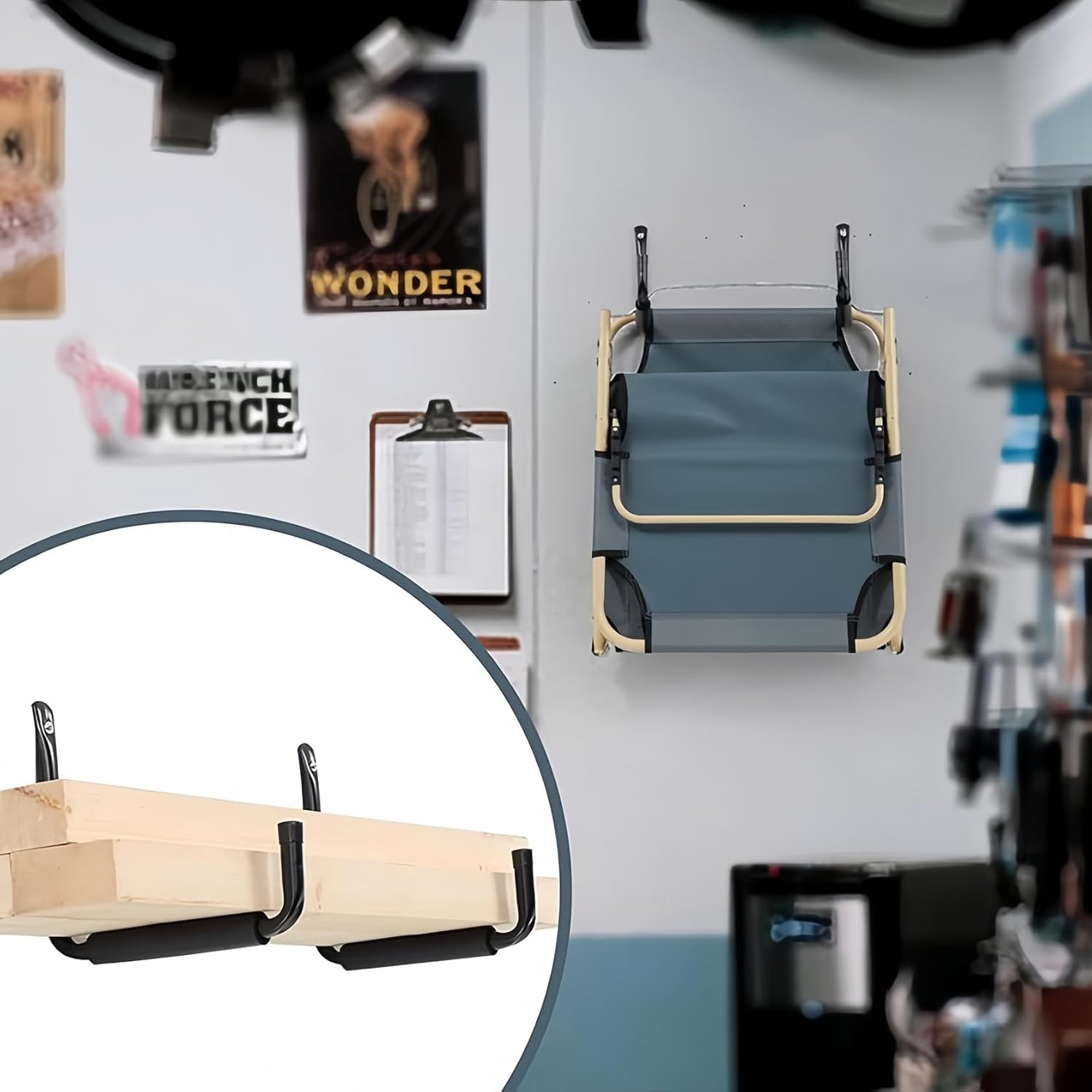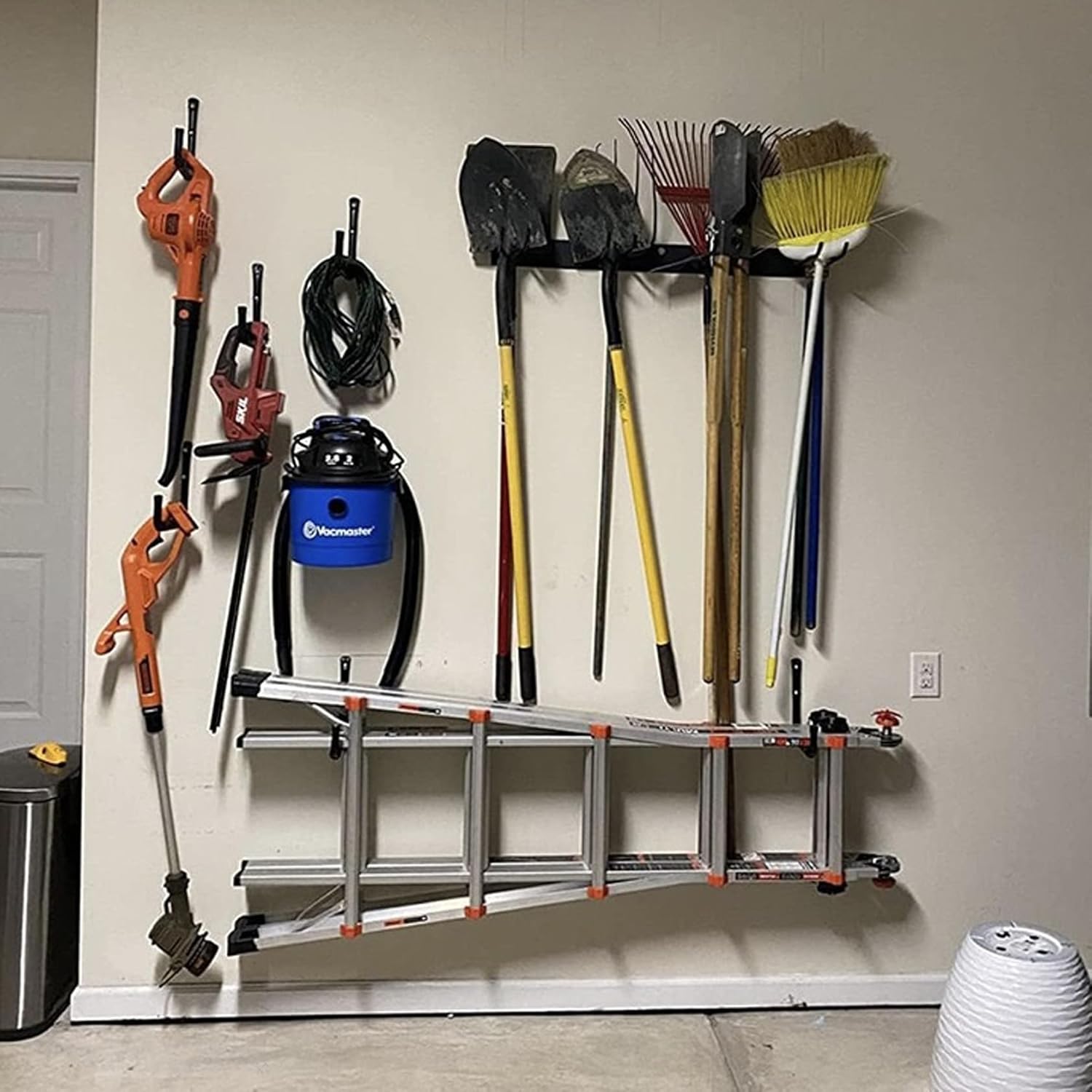 - Wide Application: Garage ladder hanger are widely used and can be employed for storing items such as kayaks, skis, surfboards, paddleboards, etc. They are also commonly used as heavy-duty hooks for storing sports equipment like canoes, folding chairs, garden hoses, and bicycles.