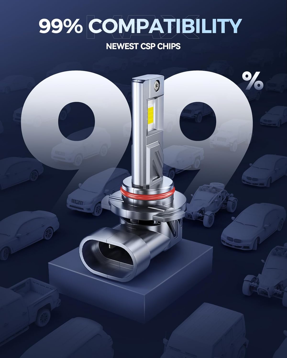 KAX 2025 10X Brightener 9005 Led Bulb for Car Owners, 50000Lm HB3 for Drivers at Night, LED Bulb During Bad Weather, 1:1 Real Size, 100000 Hours Lifespan, 99% Fit Your Vehicles, Plug & Play, 2 Pack