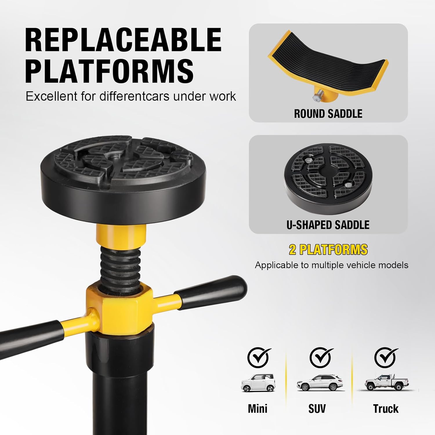 - User-Friendly Self-Locking Design: The threaded screw rod comes with a self-locking function, preventing the stand from lowering accidentally without operation. Adjusting the underhoist jack stand under the vehicle is safe and hassle-free, and the rubber handle provides a comfortable grip for easy use.