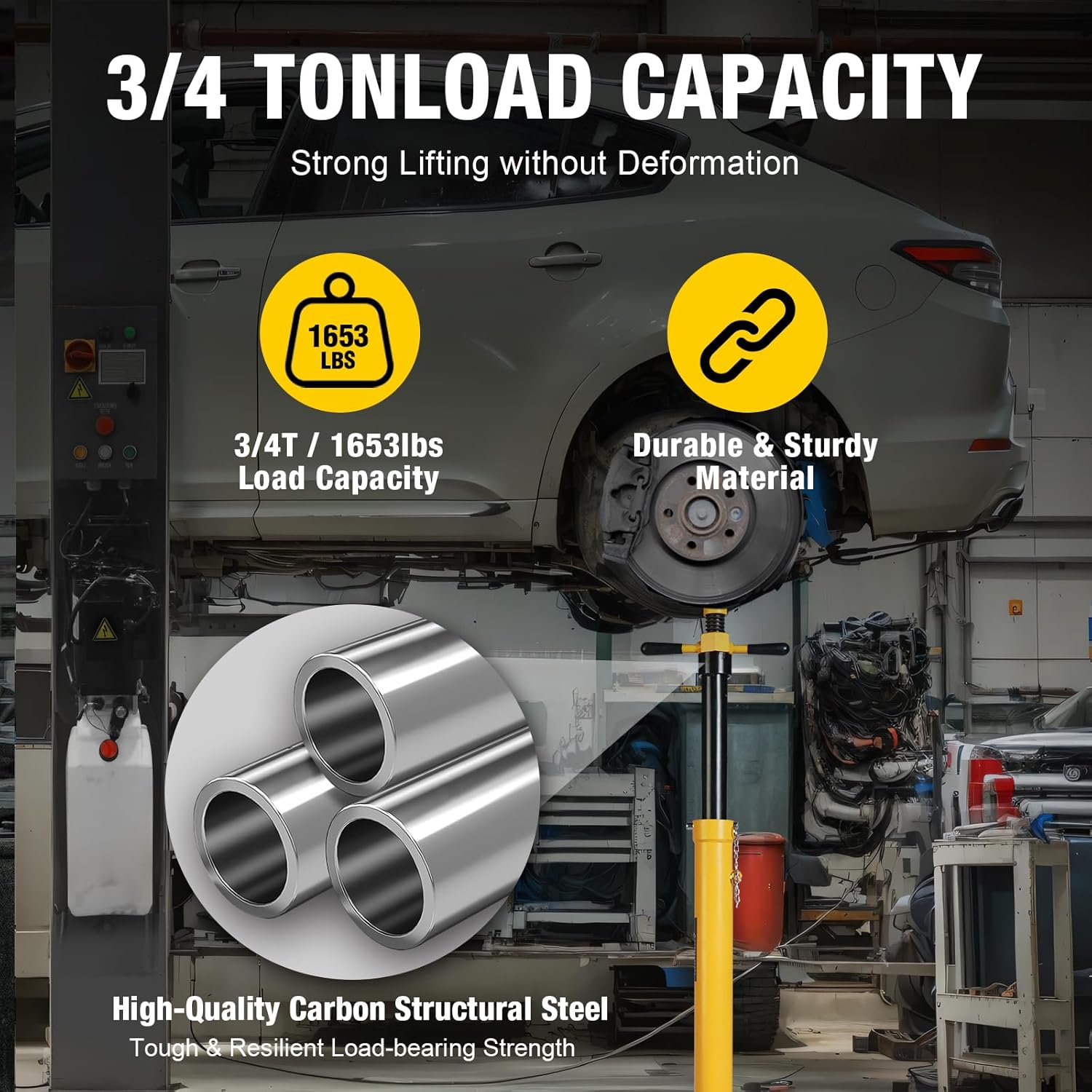 - 3/4 Ton High Load Capacity: This underhoist support stand weighs merely 25.4 lbs / 11.5 kg yet boasts a strong load-bearing capacity of 1653.5 lbs / 0.75 t. Its robust tubular steel frame effectively resists deformation and twisting. For safe use, at least 2 stands are recommended, and they are suitable for supporting most small cars and similar vehicles.
