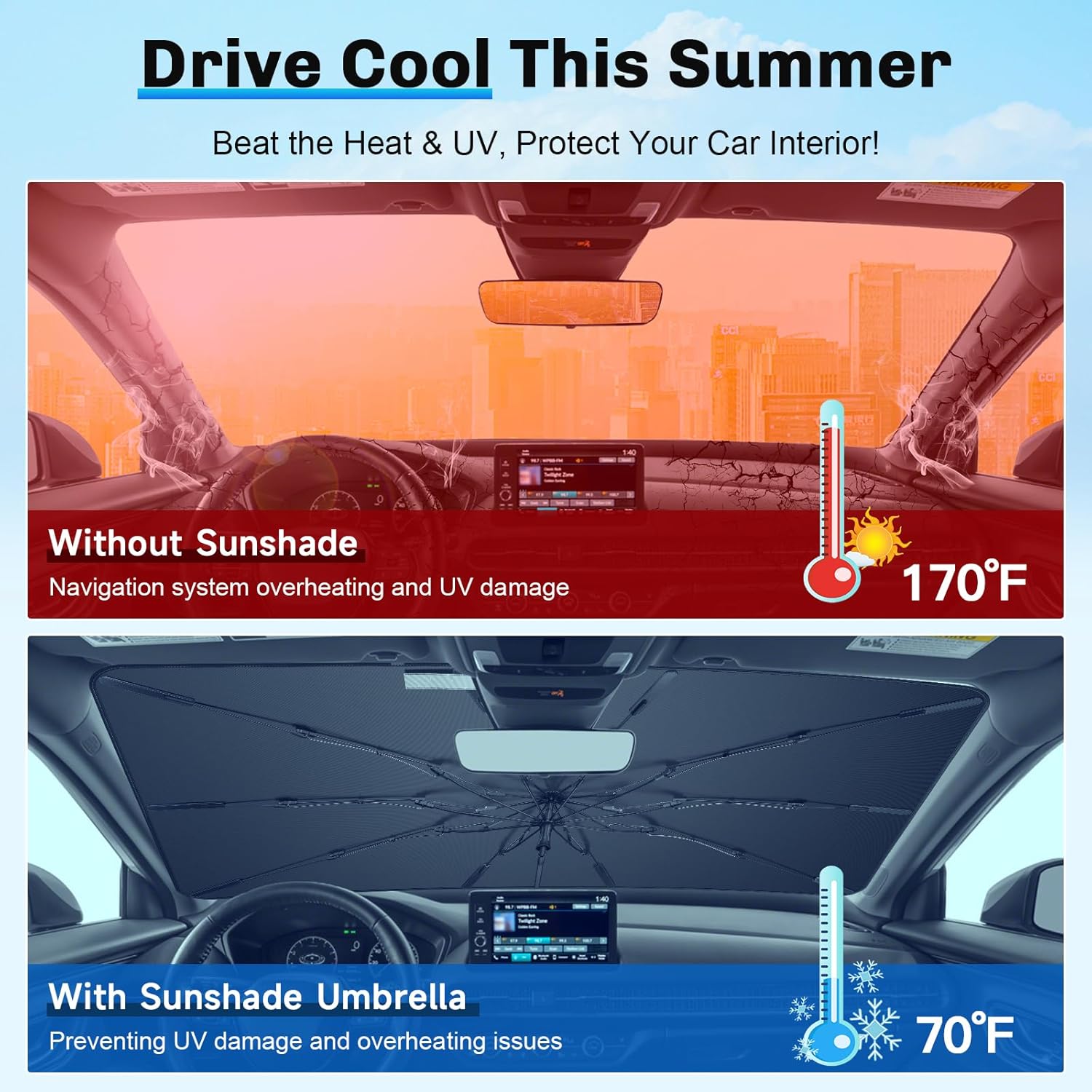 - 1. Sun & Heat Insulation: Windshield Umbrella Sunshade for 2023 2024 2025 Honda HRV Accessories, 99.9% UV protection, upgraded wrinkle-resistant fabric reflects heat, keeps car cool. Protects interior from fading & cracking, ensuring comfort on hottest days