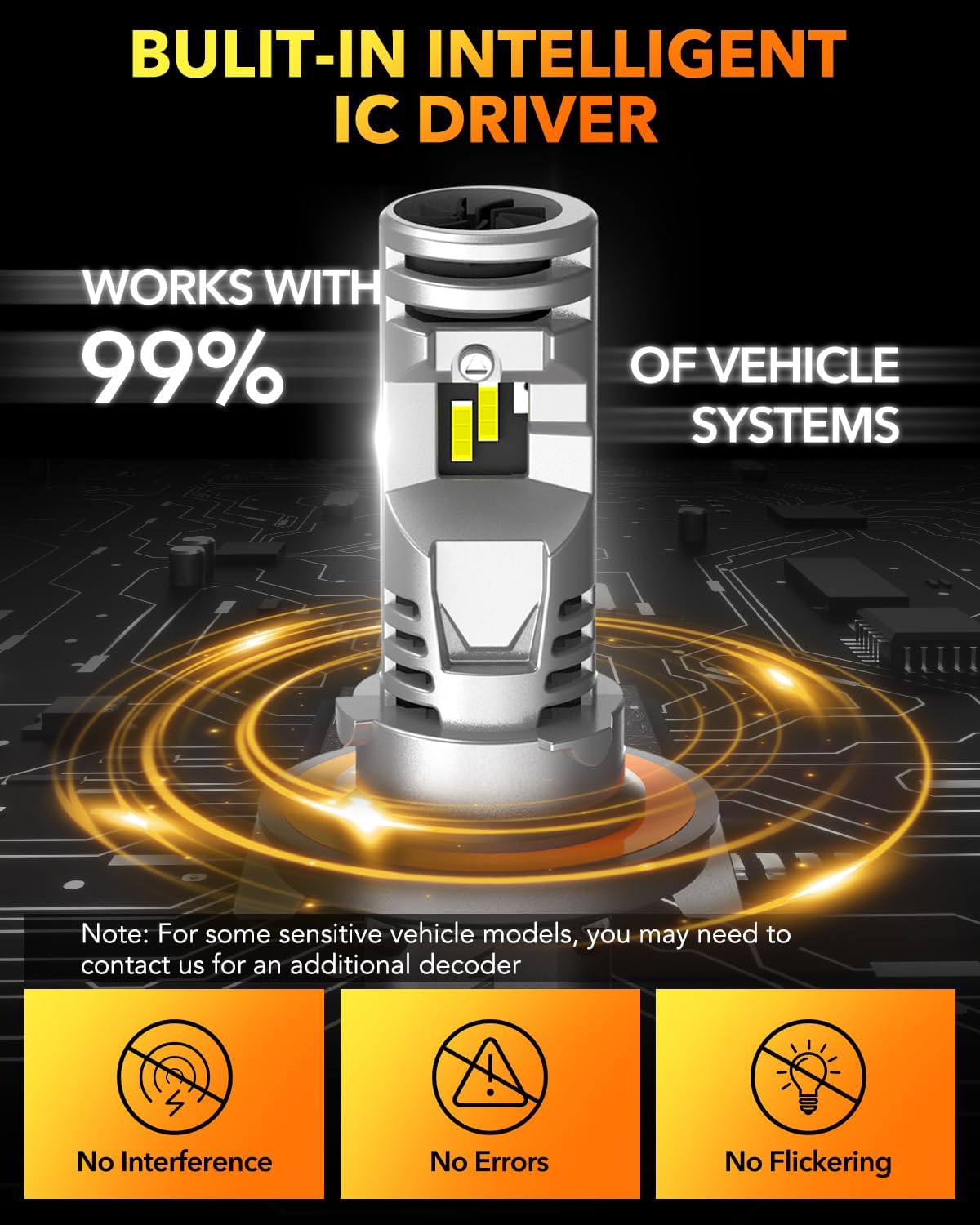 - Built to Last – With a high-performance cooling system, including aviation aluminum, a 12,000RPM turbo fan, and a copper heat sink, this 9008 bulb ensures 50,000 hours of stable performance