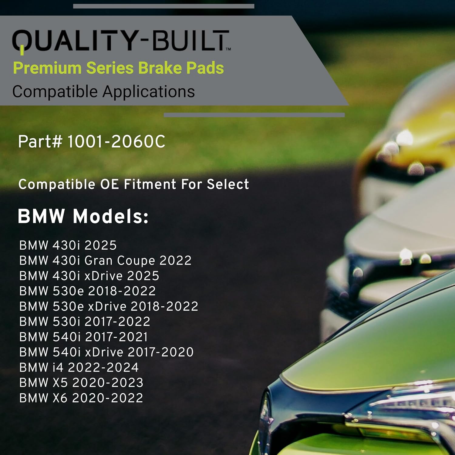 Premium Ceramic Front Brake Pads (1001-2060C) Compatible with 2017-2025 BMW (430i/430i Gran Coupe/430i xDrive/530e/530e xDrive/530i/540i/540i xDrive/i4/X5/X6)
