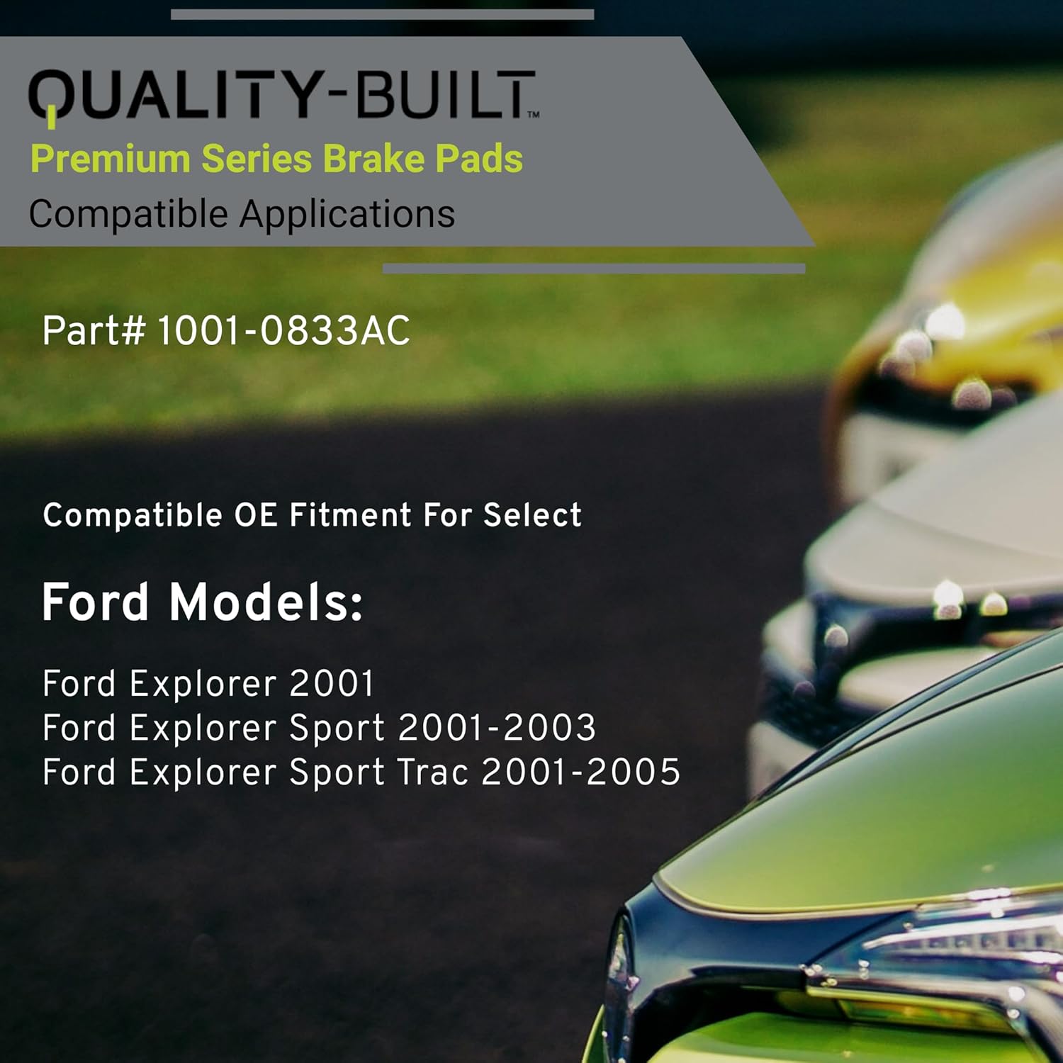 Premium Ceramic Front Brake Pads (1001-0833AC) Compatible with Ford Explorer 2001-2001, Ford Explorer Sport 2001-2003, Ford Explorer Sport Trac 2001-2005